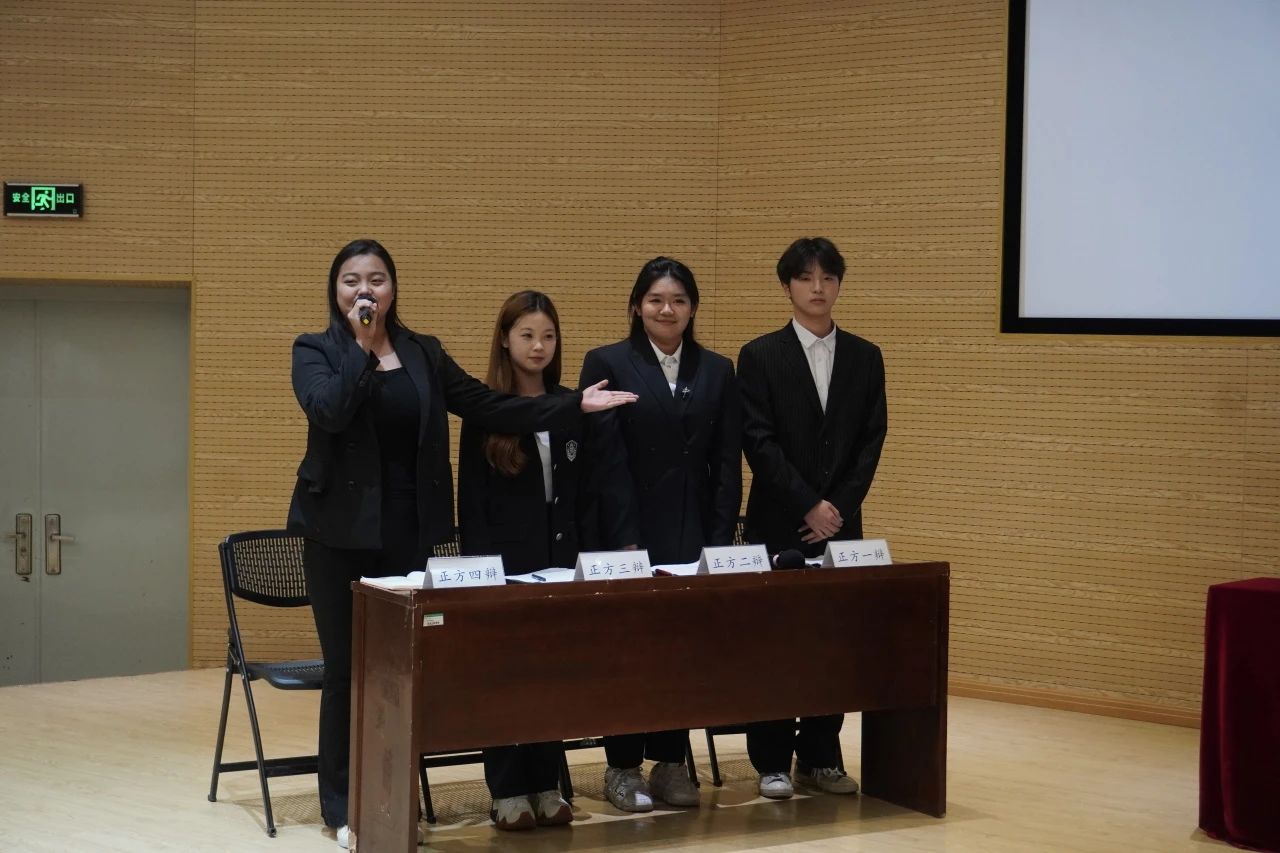 最后进行的是高年级组:他们的观点是“青年成长成才强化优势更重要”,乐天星,黄文灵,杨凡正,文戈四位辩手通过列举青年在专业技能、创新能力等方面的优势以及这些优势如何助力他们在社会竞争中脱颖而出的实例,展现了强化优势对于青年成长的重要性。