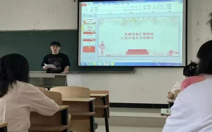 首先,由饶超、郭腾两名同志分别从对党的认识、入党动机、本人履历、现实表现等方面向党组织报告了自身情况,充分表达了其入党的决心及向党组织靠拢过程中的所学、所思、所想。