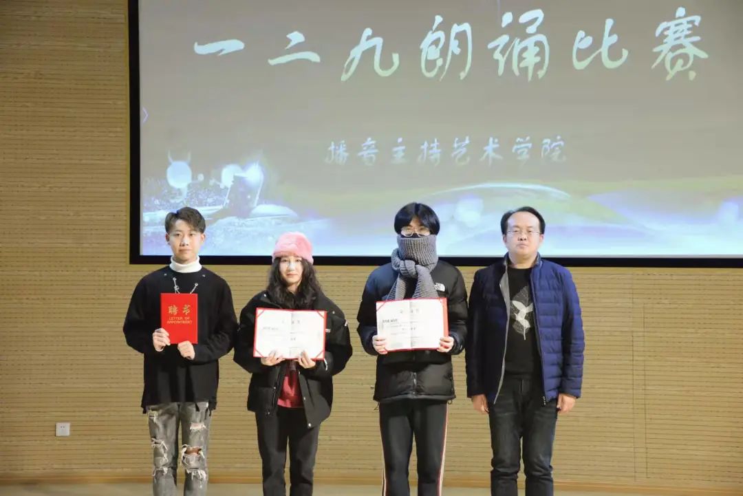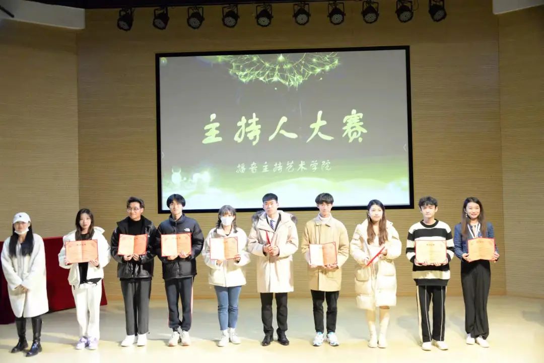 接下来是“主持人大赛”获奖人员上台领奖并合影留念。