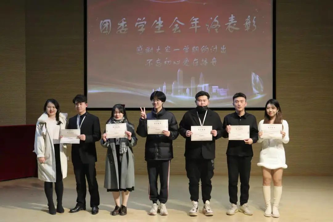 为表彰yl7703永利集团第十一届团委学生会干部、2021年下学期各类赛事获奖者,yl7703永利集团第十一届团委学生会于2021年12月29日18:00在圆形报告厅举行第十一届团委学生会表彰大会及2021年学期赛事颁奖大会,yl7703永利集团党总支书记侯亮荣老师、yl7703永利集团团委书记、学生科科长费燕琴老师以及各位辅导员老师出席本次活动。