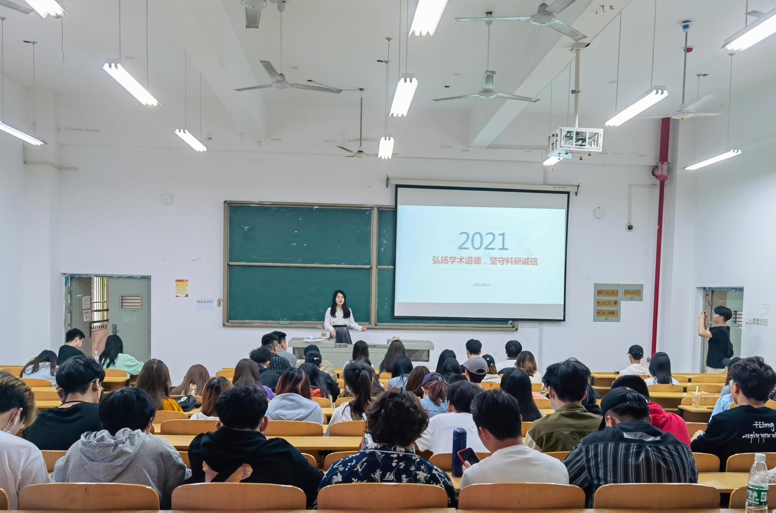 为倡导同学们恪守学术道德规范,推动科研诚信教育。yl7703永利集团于2021年4月26—28日在各年级全面展开“学术道德与科研诚信”的专题会。