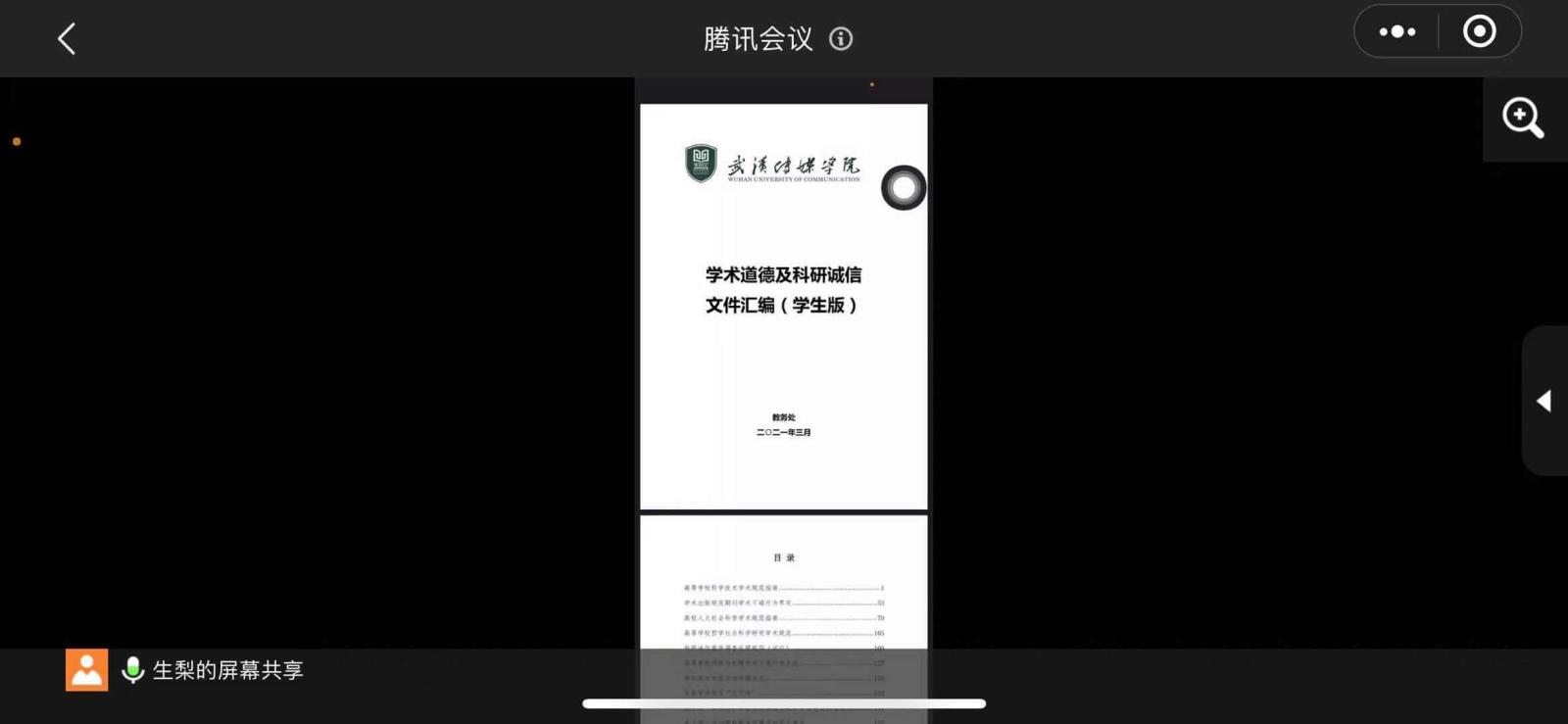 刚刚造成毕业设计答辩的2017级毕业生也通过线上会议的形式开展了专题会,辅导员费燕琴结合此次答辩中出现的论文查重超标的案例,给毕业生们敲了一个响亮的警钟,明确了学术道德的红线不能踩,科研失信的错误不能犯。