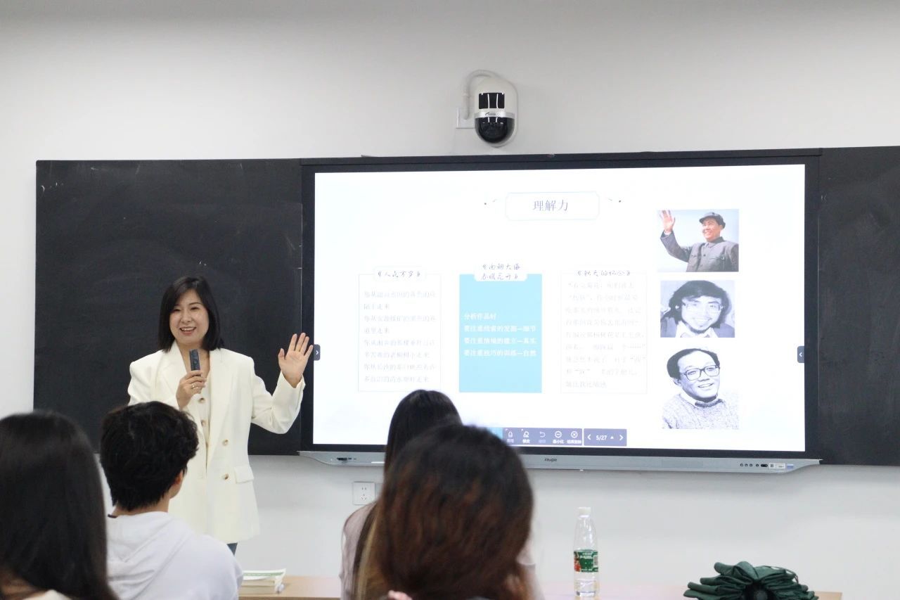 夏露老师精准地突出了教学重点,对本次课程的教学内容进行讲解,通过巧妙的方式将图文视频与基础概念相结合,使得原本抽象的朗诵概念变得具体可感,让同学们对朗诵艺术有了更加深入的理解和感悟。