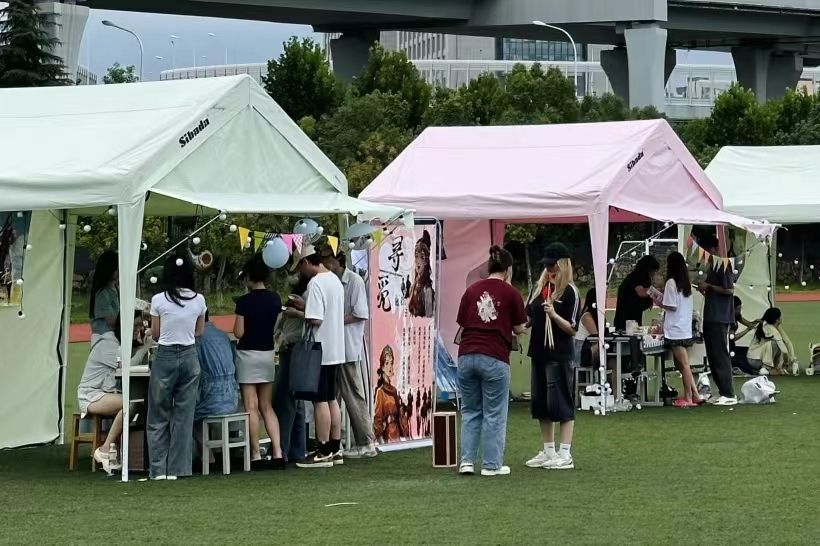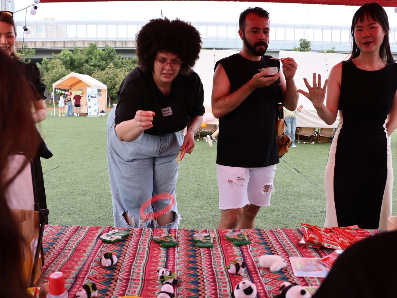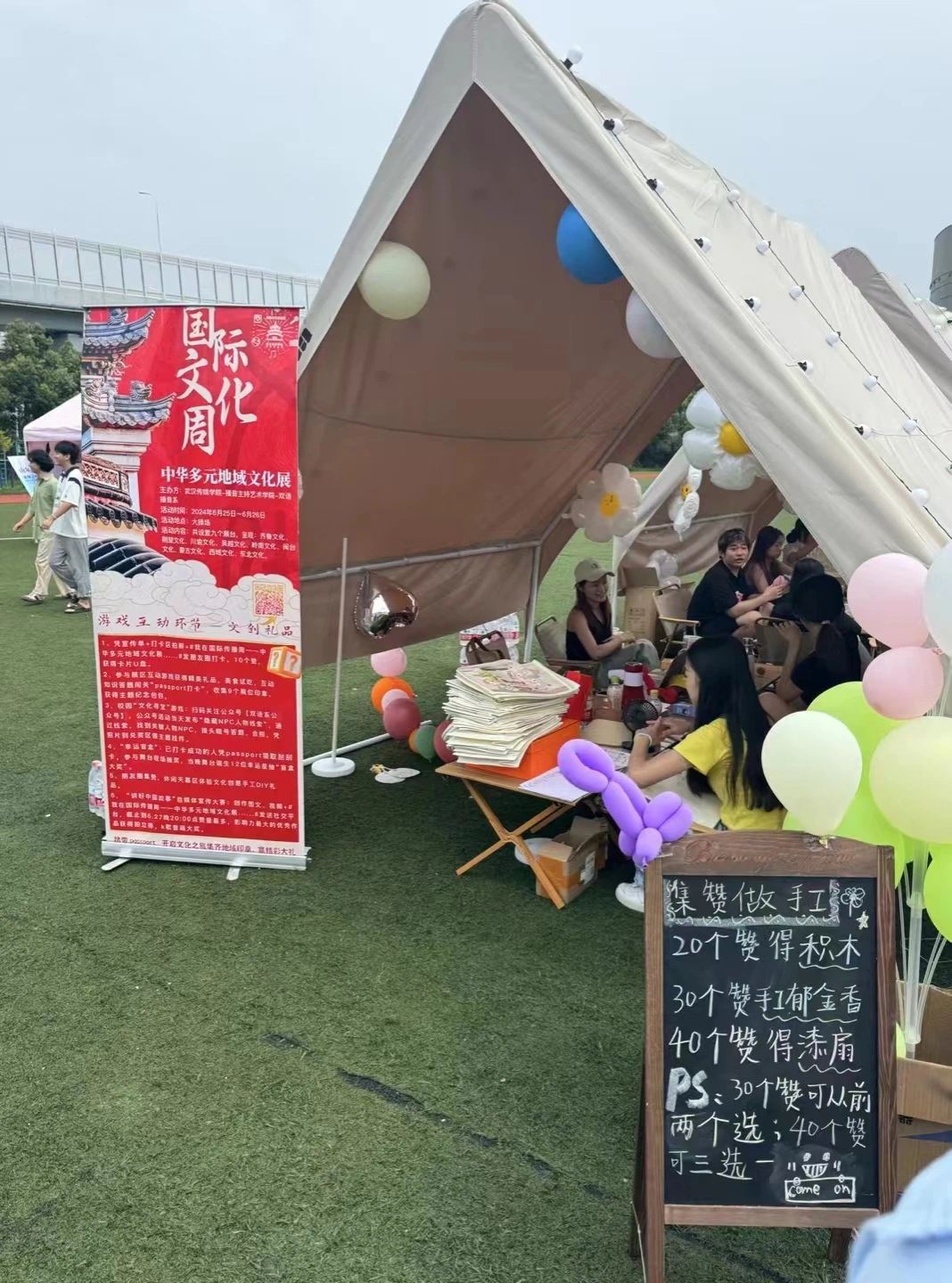 在活动中心展区,还设有手工文创制作活动以及奖品兑换处,使同学们在游玩的过程中体会不同文化间的碰撞与融合。此外,本次文化展还邀请到了许多外国友人,体验传统文化和非物质文化遗产,让他们在体验的过程中感受中国文化。