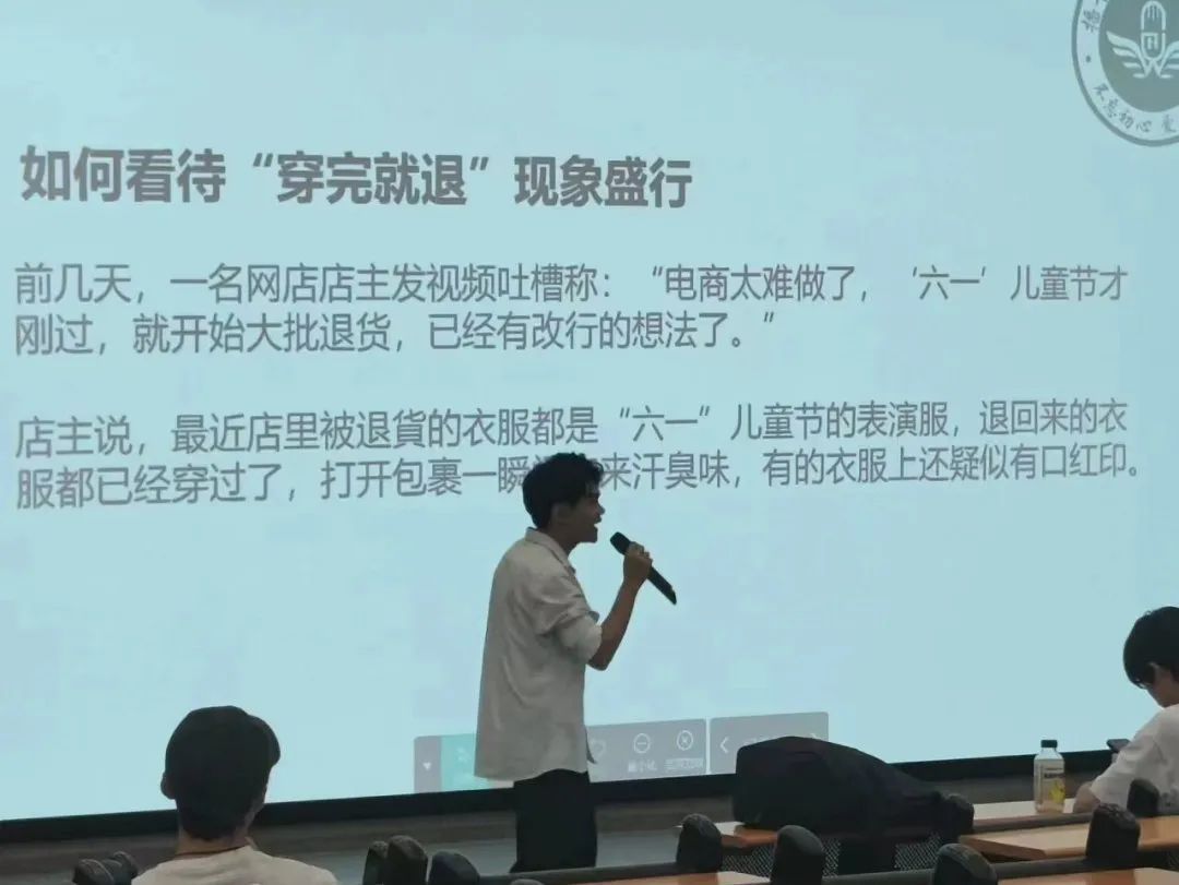 自备节目展示环节,采取车轮战,每班五个小组,上场顺序由班主任现场指定。由上月冠军班级六班率先派出一支队伍,播音B2304班、B2305班依次指定并选派队伍进行本轮比拼。比赛期间,同学们结合自身优势,为大家带来了精彩的展示。节目中不仅有练声必备的绕口令、贯口、新闻播报和稿件朗诵,还有当今热潮的直播带货,情景模拟和令众人喜笑颜开的特色小品。