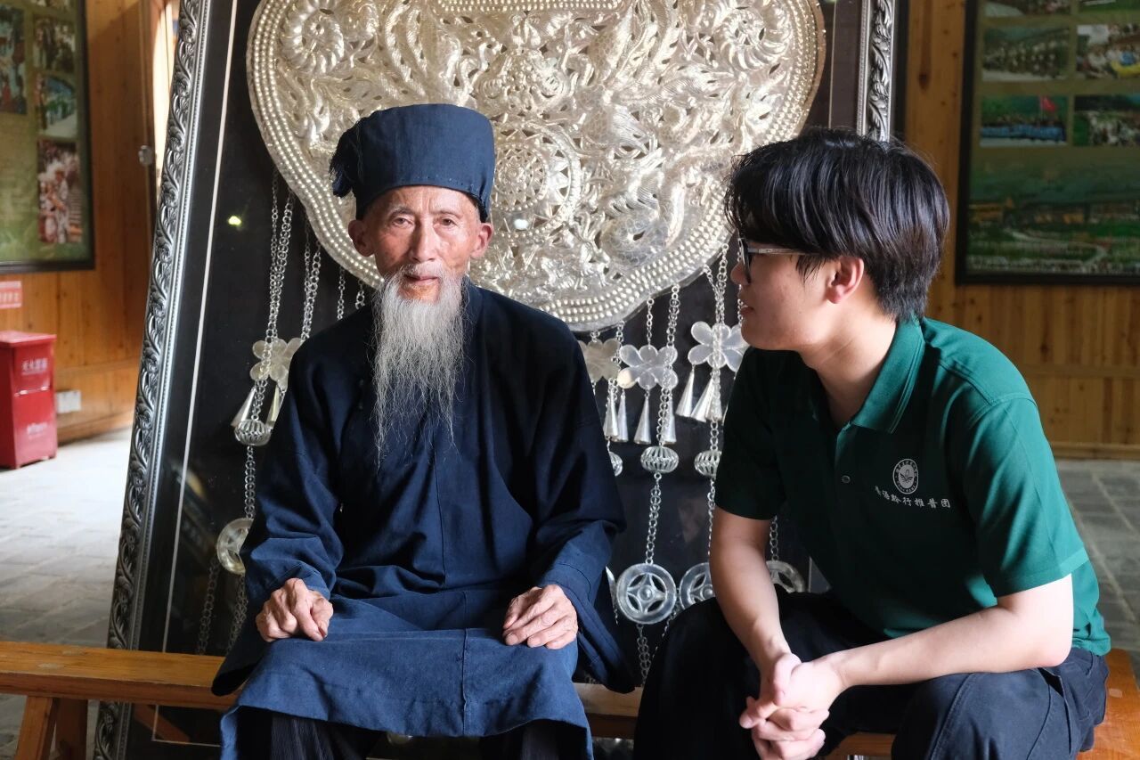 此外,团队还前往黔东南苗族侗族自治州,探寻苗族侗族文化,参观传统村落,与当地非遗传承人交流,并采访村寨老人记录地方语言文化资料。成员们在推广普通话的同时,重视少数民族语言的传承和发展,促进民族文化交融、增强民族认同感,为乡村振兴注入新活力。