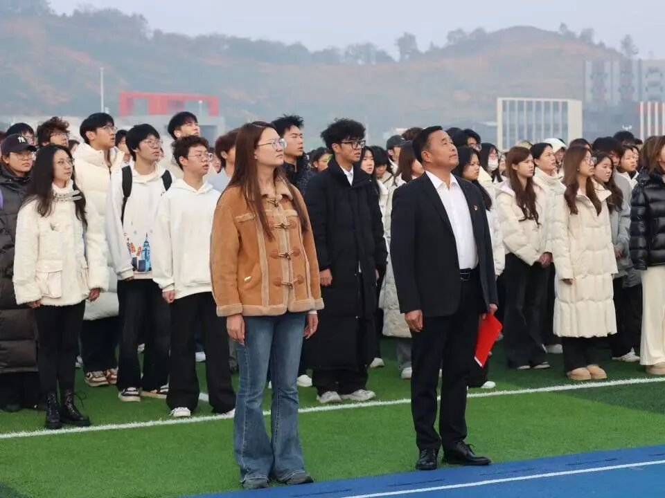(通讯员:费燕琴 窦雪绮 钟书瑜 张紫珺)2025年11月3日清晨,yl7703永利集团于大悟校区云端操场举行庄严的升旗仪式。yl7703永利集团党总支书记张爱军同志、2025级辅导员董金金老师及全体学生共同参与。庞宇佳同学担任主持人。
