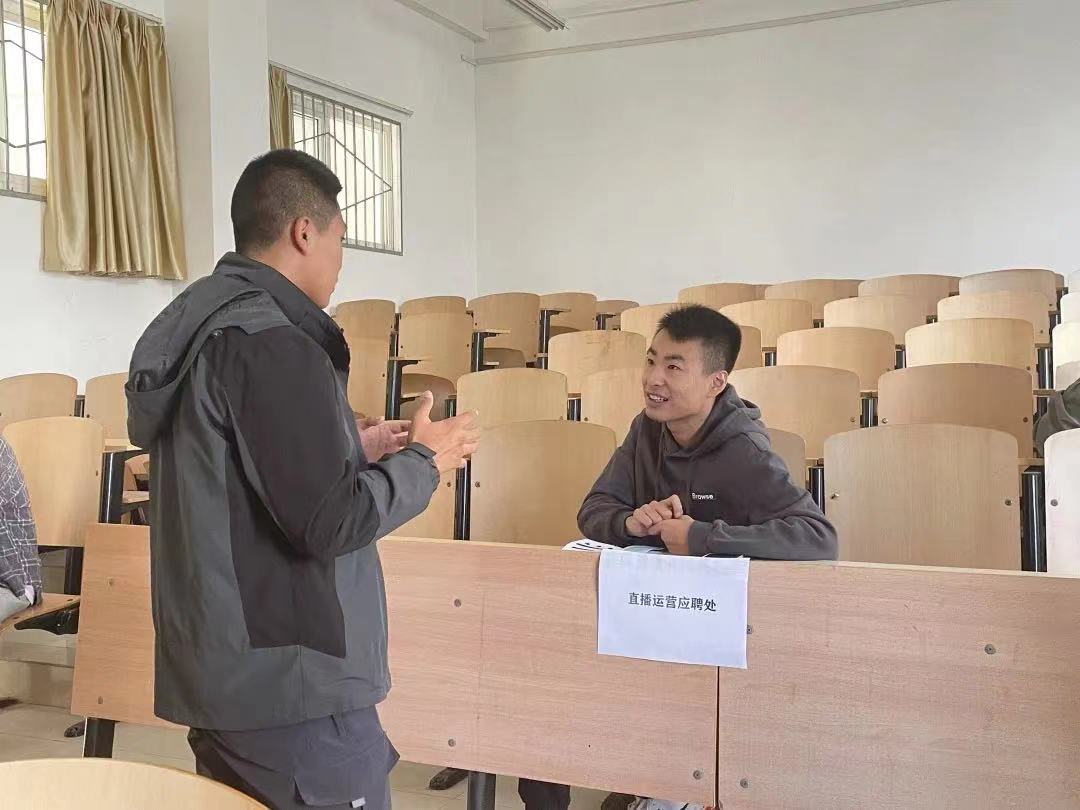 中午11:50,武汉写轮鱼文化传媒有限公司的负责人来到了现场,现场分为直播运营处和带货主播处两个部门进行面试。