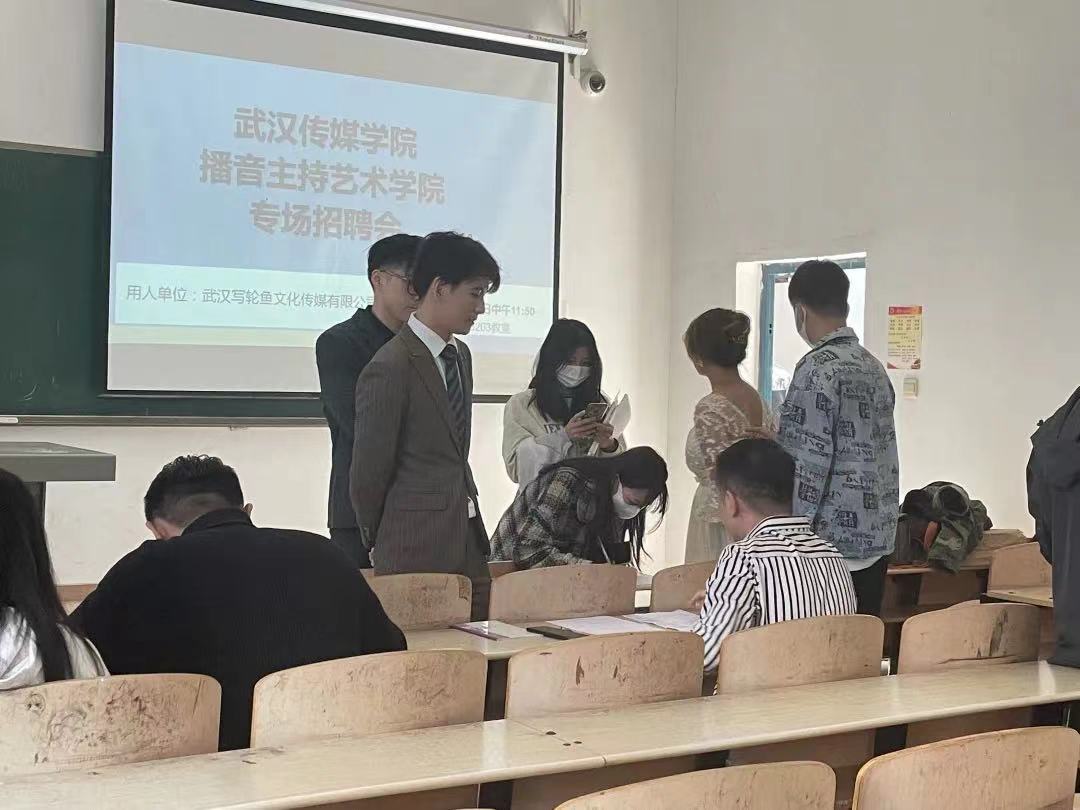 为促进我校18届毕业生充分、高质量就业、更好的推动我校学生就业工作的开展。2021年10月12日中午11:50,武汉写轮鱼文化传媒有限公司在我校3203教室举办了专场招聘会。