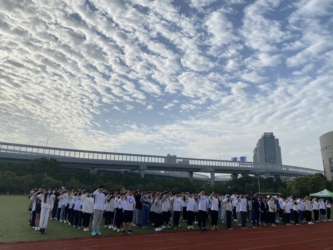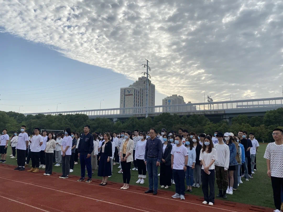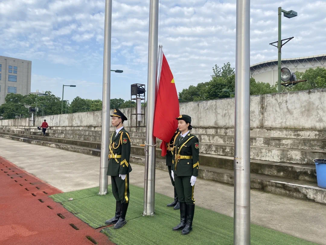 早上6点半,参与人员准备就位。从入口到操场都由监察部执勤同学引导大家站立在相应位置。七点升旗仪式正式开始。大会第一项:升国旗奏国歌。伴随着庄严的国歌,五星红旗冉冉升起,在场所有人行注目礼,心中充满对祖国的热爱与敬意。