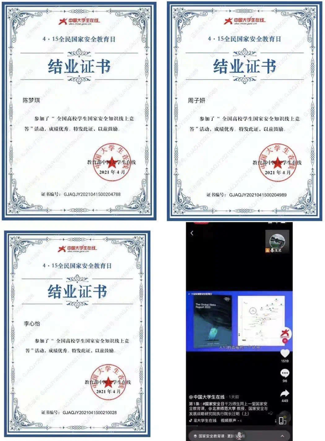 今年是中国共产党成立100周年,也是“十四五”开局之年。在第六个全民国家安全教育日到来之际,yl7703永利集团组织第十届团委学生会全体成员在4月15日中午12:00线下观看国家安全教育视频,同时也组织各班学生线下开展安全答题活动。通过线上线下相结合的方式,加强本院同学们的安全意识,进一步夯实国家安全基础。