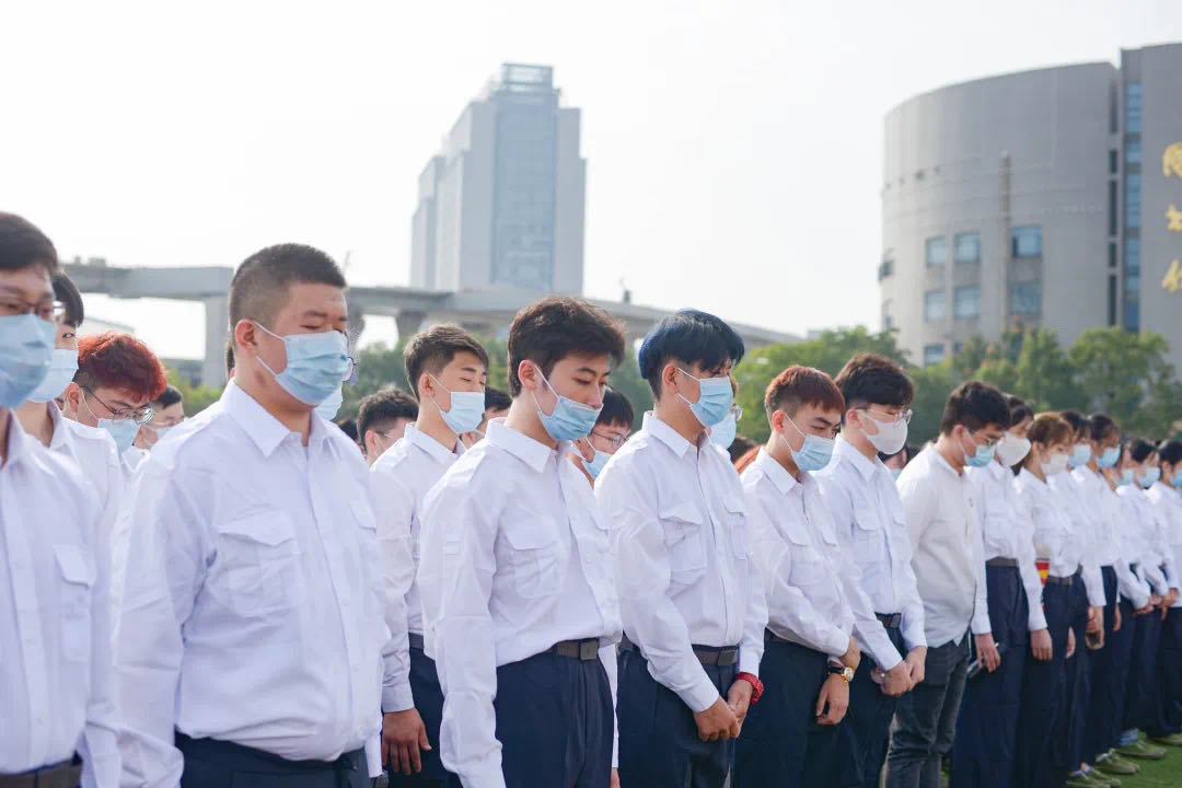首先校党委书记郭新力讲话,他表达了对全体参训新生的欢迎,同时提出希望同学们尊敬教官、服从命令、勇敢顽强、严守纪律,以饱满的热情、昂扬的斗志和威武的军姿在团结的氛围中投入到军事训练,发扬艰苦朴素的优良传统。其次进行的是新老生代表,他们谈到,新生这届是不凡的一代,非典出生,疫情中的一代,有不凡的使命,要肩负使命,不负韶华!最后还进行了默哀和授旗仪式。