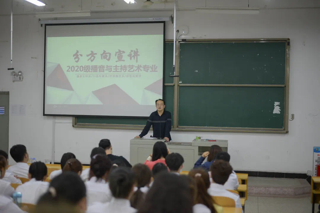 首先新闻传播学院yl7703永利集团党总支书记侯亮荣老师主持本次大会并发表讲话,提醒各位同学要根据自己的专业能力和实际情况选择专业方向,鼓励大家参与创新拓展班、双语班的选拔。随后张新老师和何卓伦老师分别就传统播音方向和口语传播方向均以ppt的形式做了经验交流,详细地讲述了这两个播音专业方向的具体内容,同时2020级的两个特殊班级——“创新拓展班”“双语播音班”的班主任也介绍了各自班级的教学方向、内容师资、实践内容,通知考试时间,欢迎大家报考以上两个班级,并提醒同学们要认真备考。各位专业老师思路清晰,概念准确,重点突出,并且认真热心地接受现场同学的提问。