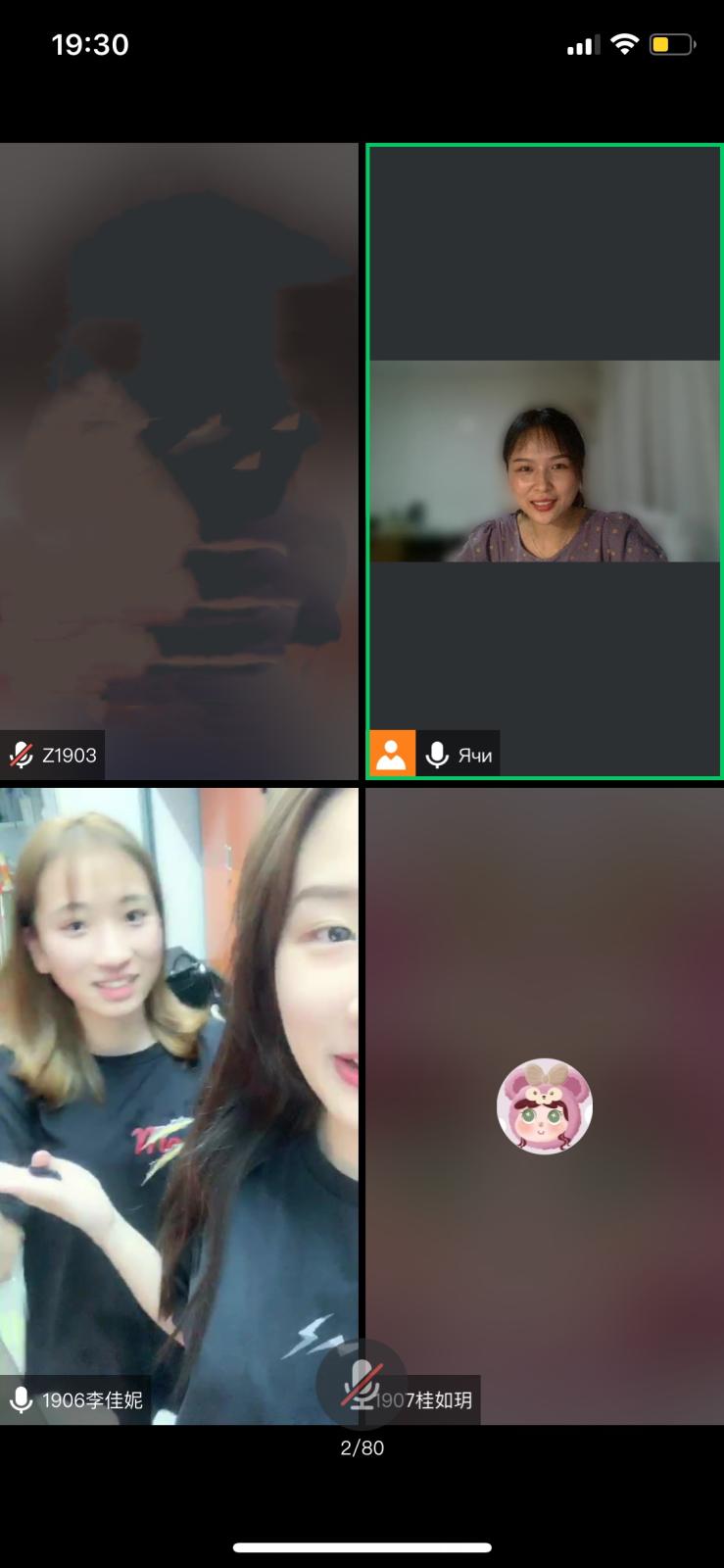 在点名阶段,由于这次线上会议的特殊性,童雅棋老师随机抽取了几位同学进行视频通话,同学们也积极汇报了寝室状况。