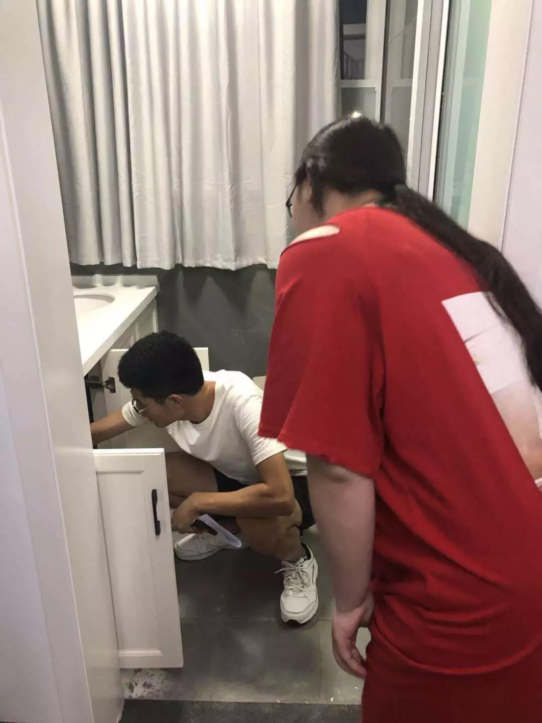 辅导员和学长班主任正在帮新生们解决寝室的热水问题,尽力让新生们有一个最舒适的住宿环境。书记和两位辅导员悉心的记录着同学们的问题,我们将尽快的解决同学们反应的各种问题,打造一个良好的宿舍氛围。