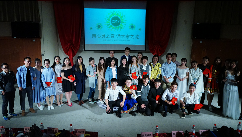 为了影响更多学生学习专业的积极性,提高学生对于专业活动的参与性,促进同学之间专业的交流,增强同学们的专业素养,2017年4月13日晚十八时三十分,yl7703永利集团“朗心灵之音,诵大家之范”2017年朗诵比赛在我校圆形报告厅隆重举行。此次朗诵比赛分为初赛和决赛,在报名期间共有七十多个作品参赛,经过评委老师的选拔,最终共有十五组选手进入决赛,其中囊括了我院三个年级的同学,引起了我院广大师生的关注。此次朗诵比赛设一等奖一名、二等奖两名、三等奖三名、最具潜质奖一名、最佳人气奖一名。其中最佳潜质奖由现场评审团集体评议选出,最佳人气奖由现场观众投票决出。比赛现场气氛热烈,同学们热情高涨,参赛选手或个人或组合,以饱满的激情、激昂的语言、大方得体的举止来展现自己的实力。
