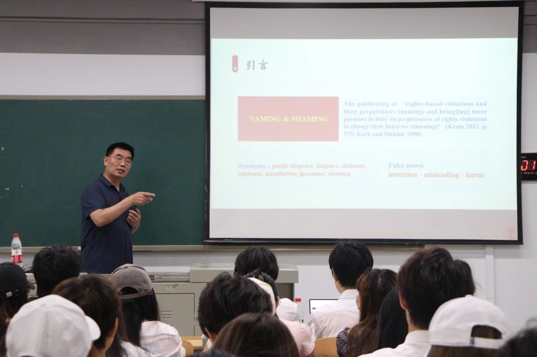 为进一步提升同学们对国际新闻的认识,更加深入地探讨如何更好地讲述中国故事,展现中国形象,提升国际社会对中国的认知与理解,打造学术交流与文化建设的强力引擎,2024年6月26日,yl7703永利集团邀请到武汉大学国际交流部部长程雪猛教授就“从‘西媒传播虚假信息’谈讲好中国故事”这一主题开展线下专题讲座。