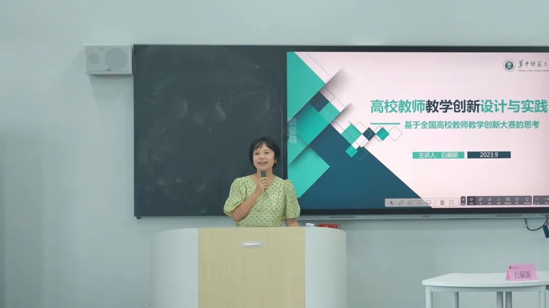 讲座上,白老师从不同方面,不同角度针高校教师教学创新大赛的学术特点进行了全面且深刻的诠释与论述,对于比赛课程实操过程中存在的普遍问题进行了经验上的分析解答。