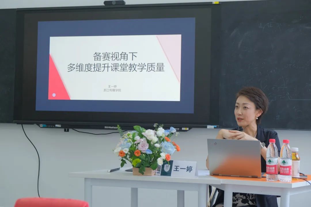第二场专题分享,王一婷教授以《备赛视角下多维度提升课堂教学质量》为题,重点探讨了如何从备赛角度出发,提高课堂教学的质量。