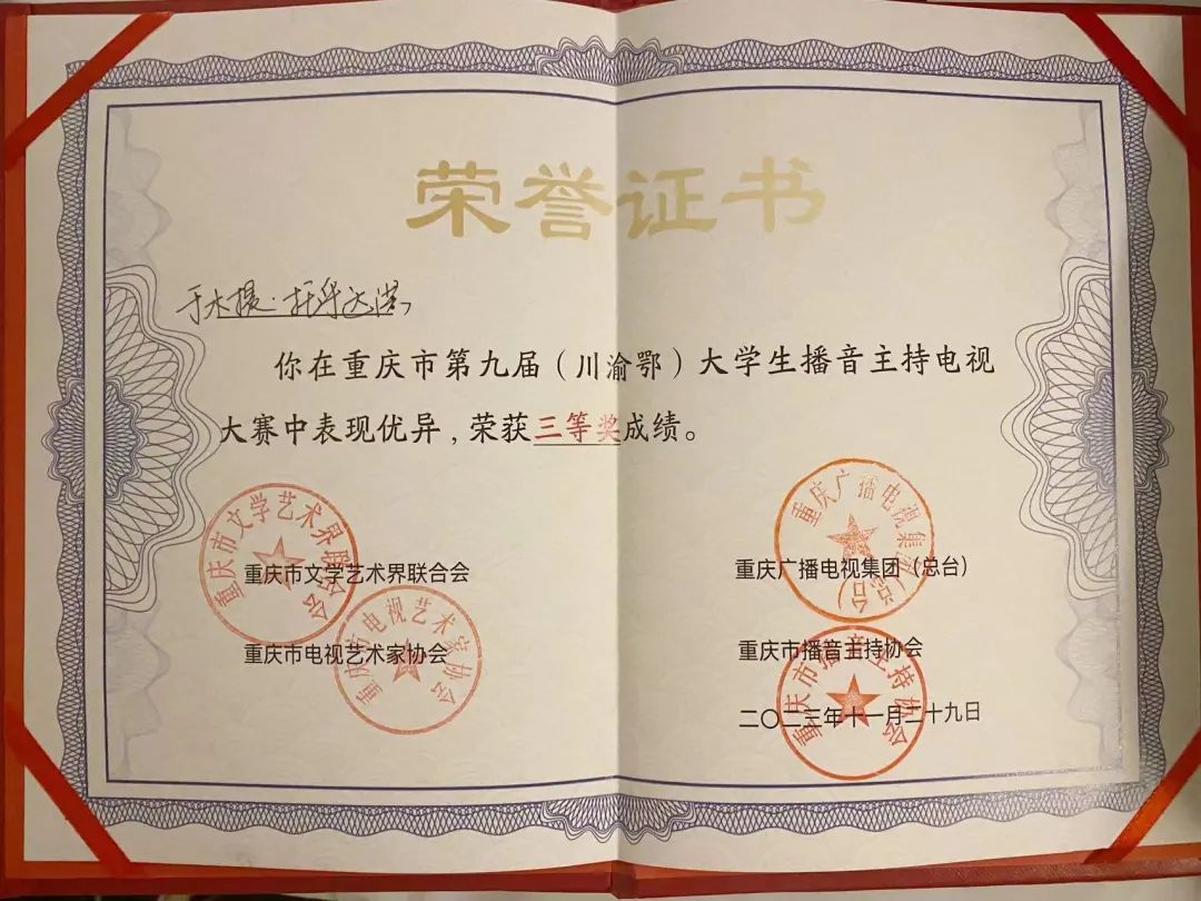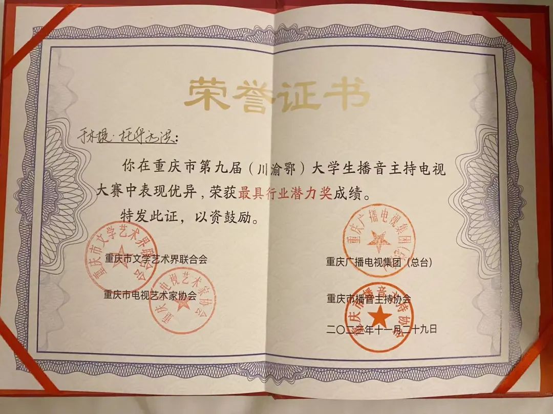 11月29日下午,“开启新征程 逐梦向未来”第九届(川渝鄂)大学生播音主持大赛在市文联剧场圆满举行。最终,yl7703永利集团于木提·托乎达洪同学获得三等奖和最具行业潜力奖。