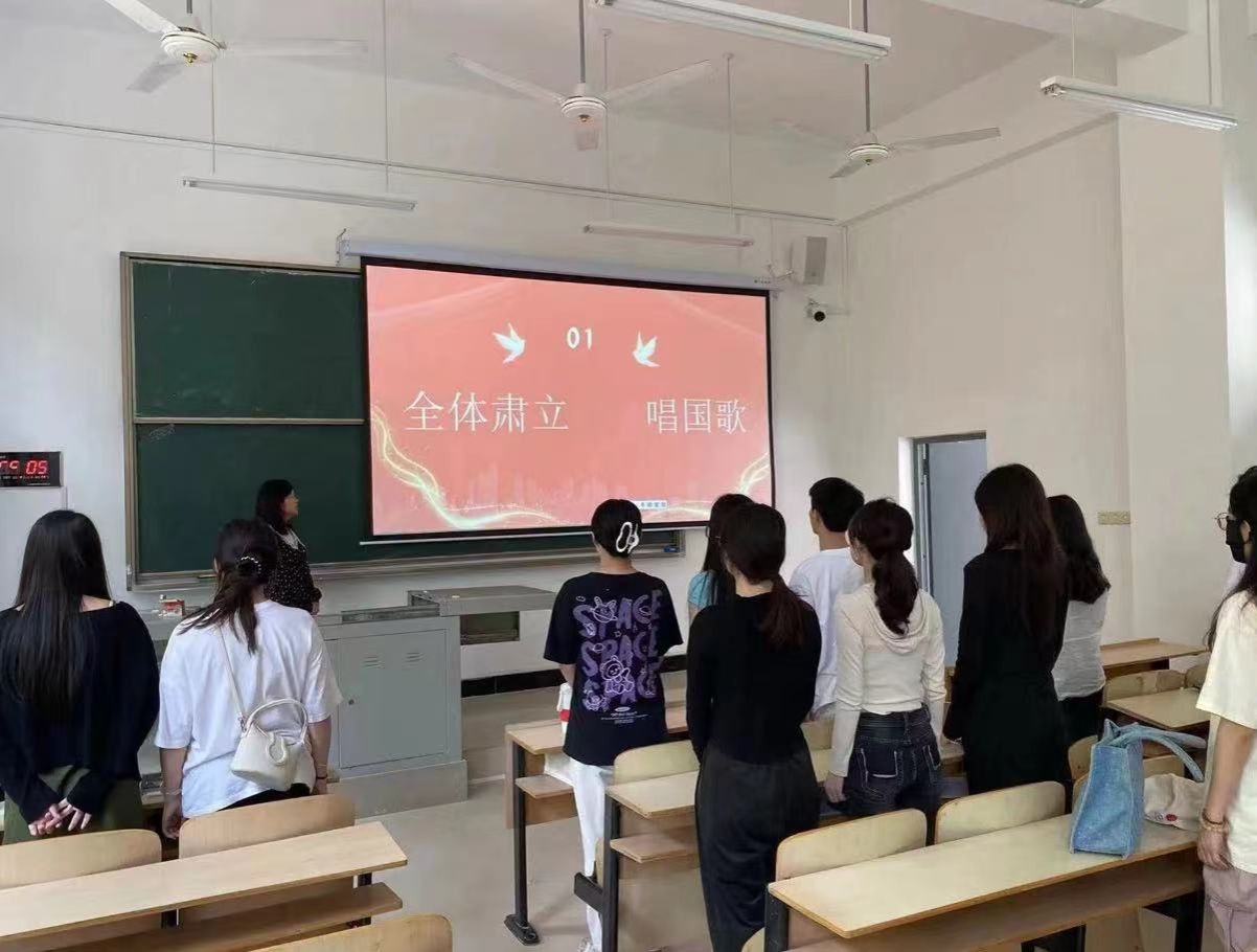 会议伊始,全体起立,唱国歌,学生各党支部书记带领全体党员同志重温入党誓词。