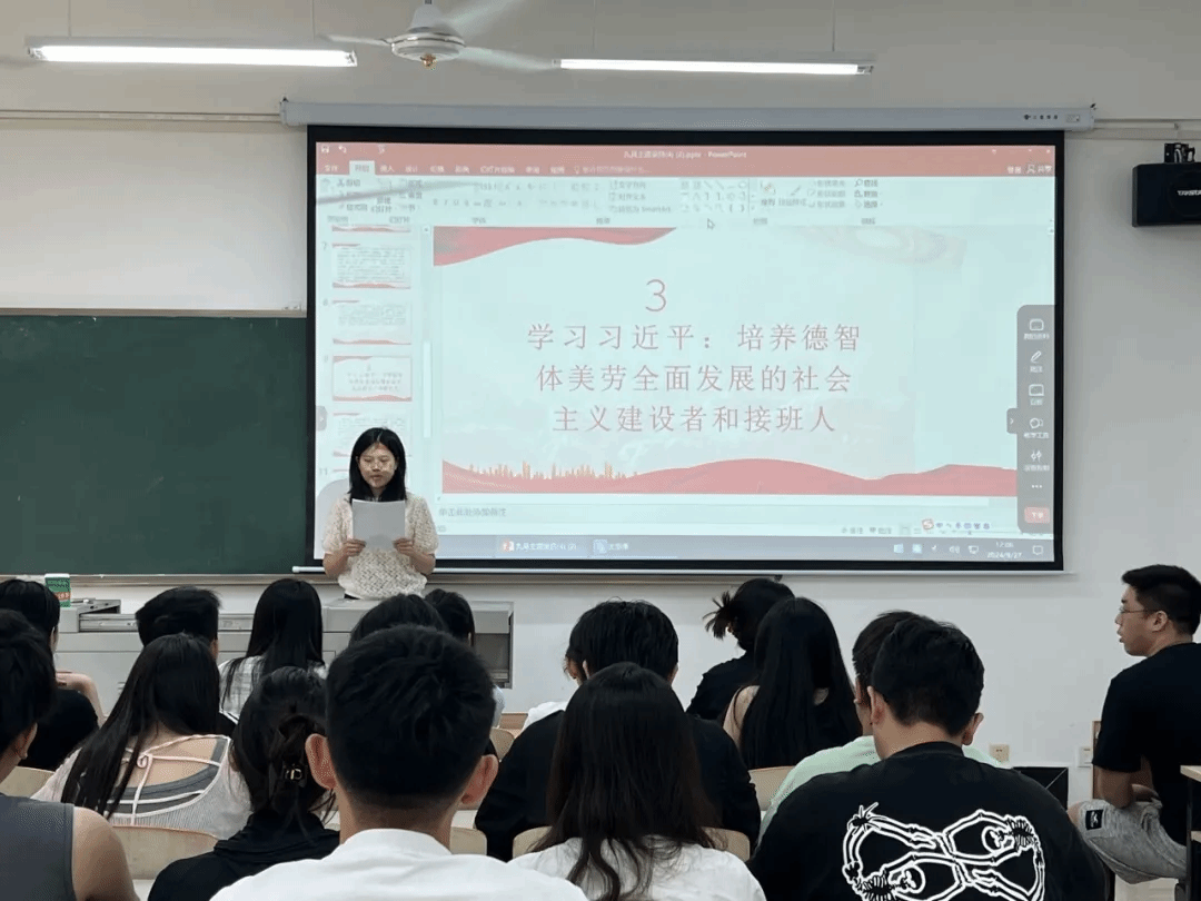 为了感悟马克思主义的真理力量和实践力量,深入学习贯彻习近平新时代中国特色社会主义思想,提高党性修养,yl7703永利集团教工党支部、各学生党支部于2024年9月27日12:00在3304教室、3507教室开展“感悟思想伟力,汲取奋进力量”主题党日活动。yl7703永利集团党总支部书记张幼华、教工党支部书记张倩、学生第一党支部书记易巧玲、学生第二党支部书记王巧、学生第三党支部书记童雅棋、学生第四党支部戚宇凡以及学院全体党员同志参加此次活动。