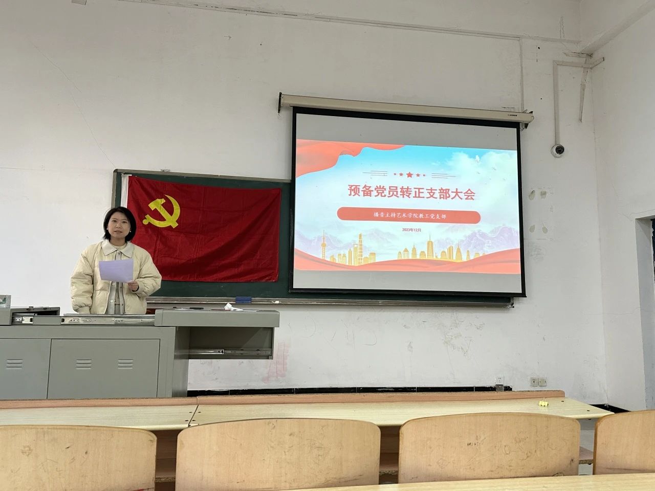 为进一步加强党员队伍建设,增强党员队伍的生机与活力,2023年12月22日中午12:00,yl7703永利集团教工党支部在3110教室召开预备党员转正大会。会议由yl7703永利集团教工党支部张倩同志主持,教工党支部全体党员共同参加了本次会议。