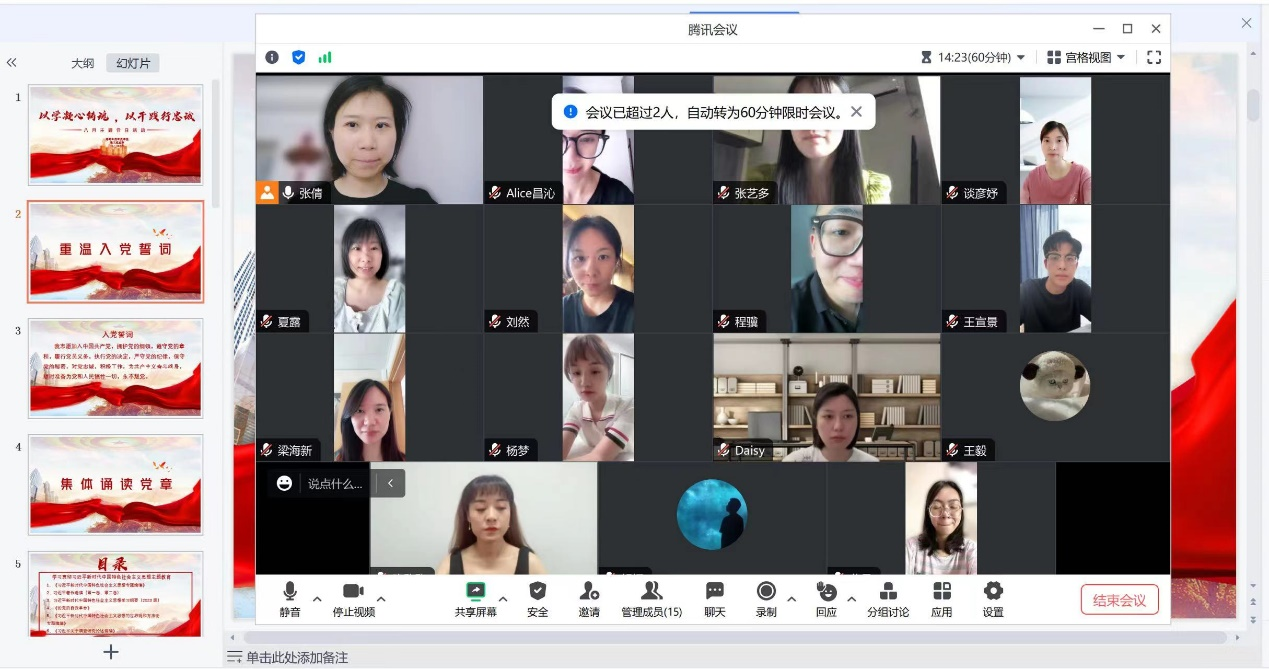 2023年8月24日下午15:00yl7703永利集团教工党支部开展了主题为“以学凝心铸魂以干践行忠诚的8月主题党日活动。参与本次活动的有yl7703永利集团教工党支部书记陈黎黎,组织委员刘然,宣传委员张倩,以及yl7703永利集团全体教职工党员,此次活动由教工党支部宣传委员张倩主持。