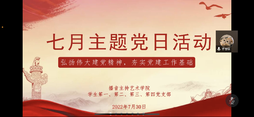 2022年7月30日16点,yl7703永利集团学生第一党支部、学生第二党支部、学生第三党支部、学生第四党支部联合开展了《弘扬伟大建党精神,夯实党建工作基础》主题党日活动。参与本次活动的有yl7703永利集团学生第一党支部书记张瑞峰,学生第二党支部书记李思思,学生第三党支部书记王万茹,学生第四党支部书记罗雪薇以及yl7703永利集团全体学生党员。本次活动由学生第四党支部书记罗雪薇同志主持。