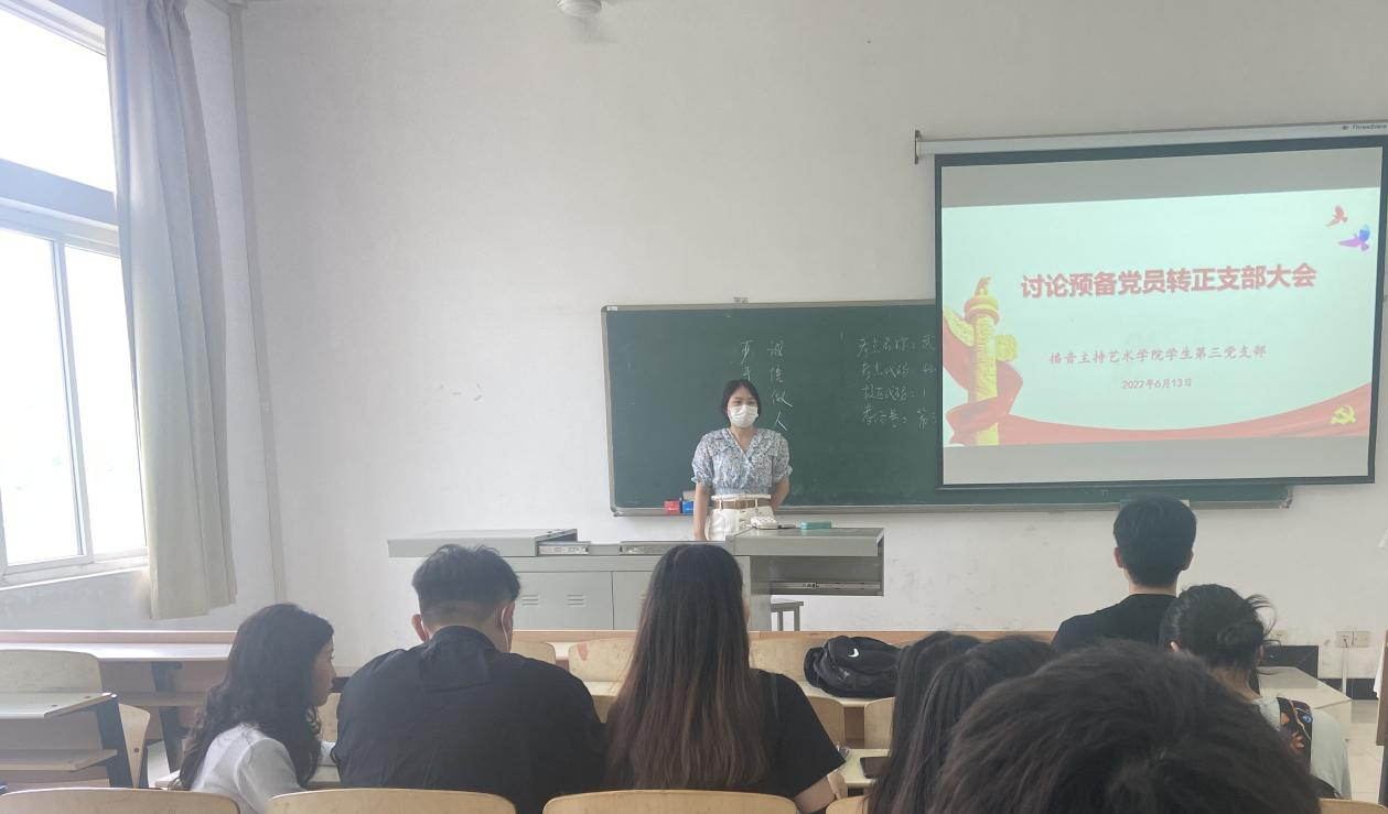 为进一步壮大党员队伍,增强党支部的凝聚力和战斗力,2022年6月13日12点,yl7703永利集团学生第三党支部在3203教室召开预备党员转正大会。会议由学生第三党支部书记王万茹同志主持,支部全体党员共同参加了本次会议。
