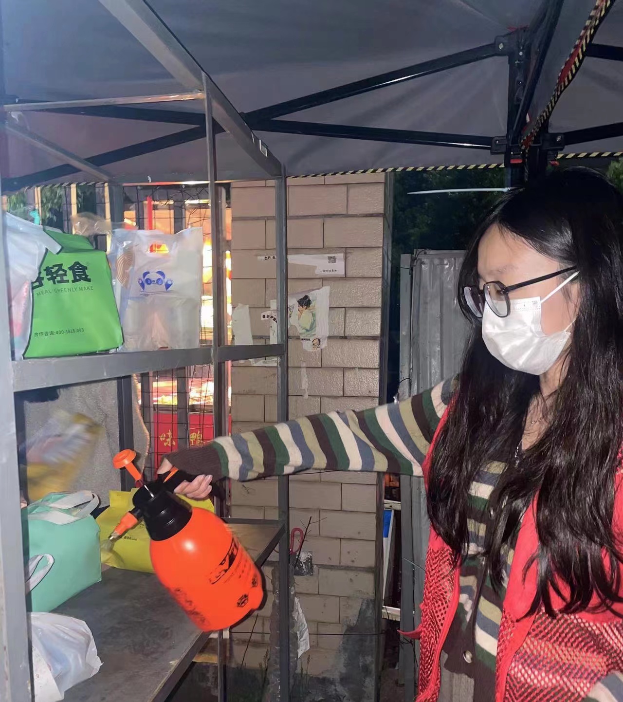 疫情就是命令,防控就是责任。自新一轮疫情防控阻击战打响以来,为贯彻落实江夏区疫情防控指挥部相关要求,进一步加强餐饮外卖服务环节疫情防控,有效减少人员接触,巩固防疫成果,我校成立餐饮外卖点管理专班。我院师生党员、发展对象积极响应,参与北门外卖点消杀服务,为疫情防控贡献出自己的一份力量。
