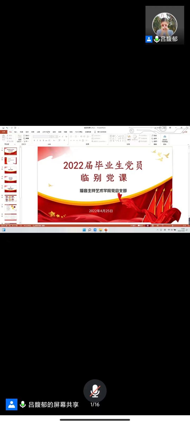 为进一步提升毕业生党员的党性修养,坚定毕业生党员信仰和初心,提醒毕业生党员们时刻牢记党员身份,无论奔赴什么工作岗位,都要充分发挥党员的先锋模范作用。2022年4月25日中午13:00,yl7703永利集团开展“临别党课”活动,此次党课由yl7703永利集团党总支部组织委员吕馥郁同志主讲,参加会议的有yl7703永利集团学生第一、第二、第三、第四党支部全体毕业生党员。