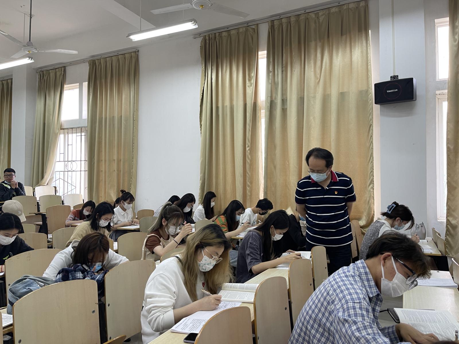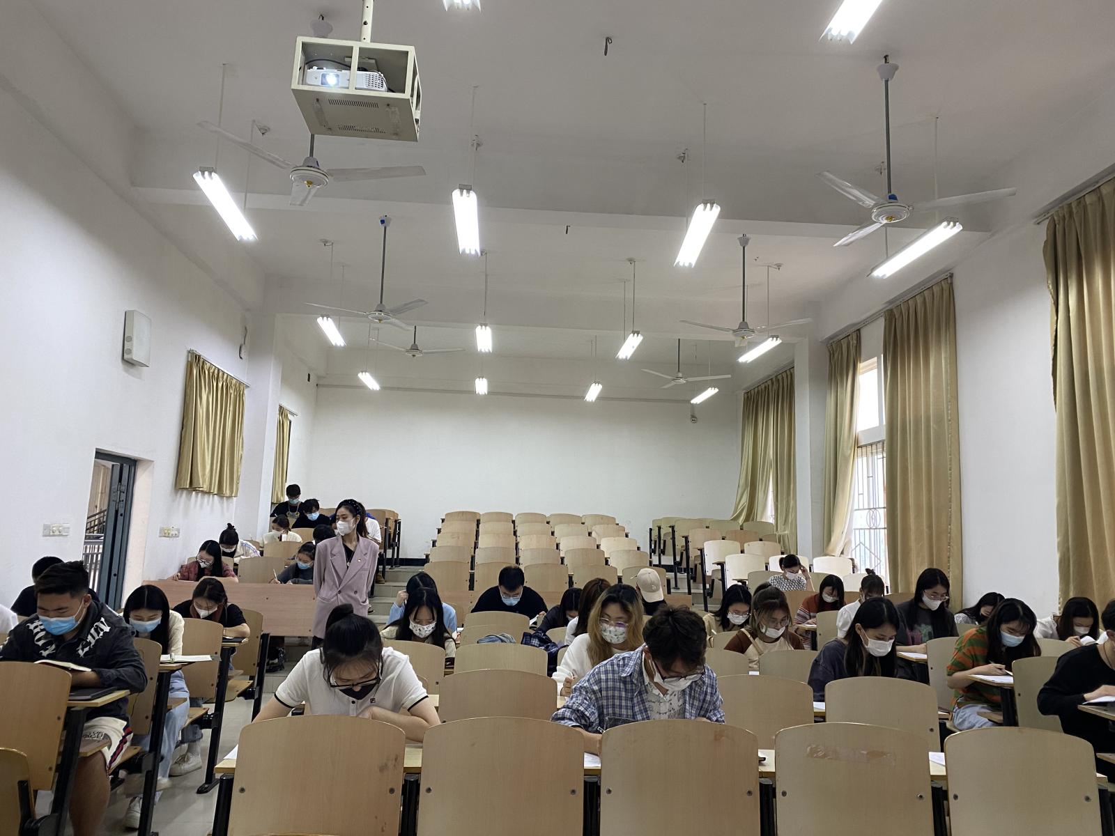 此次模拟考试,由yl7703永利集团党总支部书记侯亮荣同志,党总支部组织委员吕馥郁同志以及学生第一党支部书记张瑞峰同志、学生第二党支部书记李思思同志、学生第三党支部书记王万茹同志监考,严格监督各个同学自主完成考试。同学们按时参加考试,认真思考、细致作答,整个考场秩序井然。