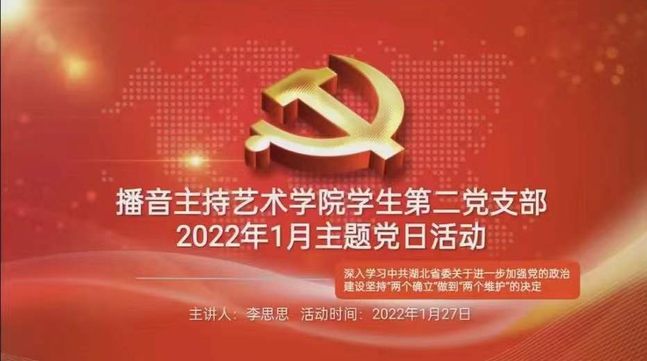 2022年1月27日上午12:30,yl7703永利集团学生第二党支部在腾讯会议开展了主题为《学习贯彻中共湖北省委关于进一步加强党的政治建设、坚持“两个确立”、做到“两个维护”的决定》的主题党日活动。参与此次活动的有yl7703永利集团学生第二党支部书记李思思,以及学生第二党支部全体党员,此次活动由学生第二党支部书记李思思同志主持。
