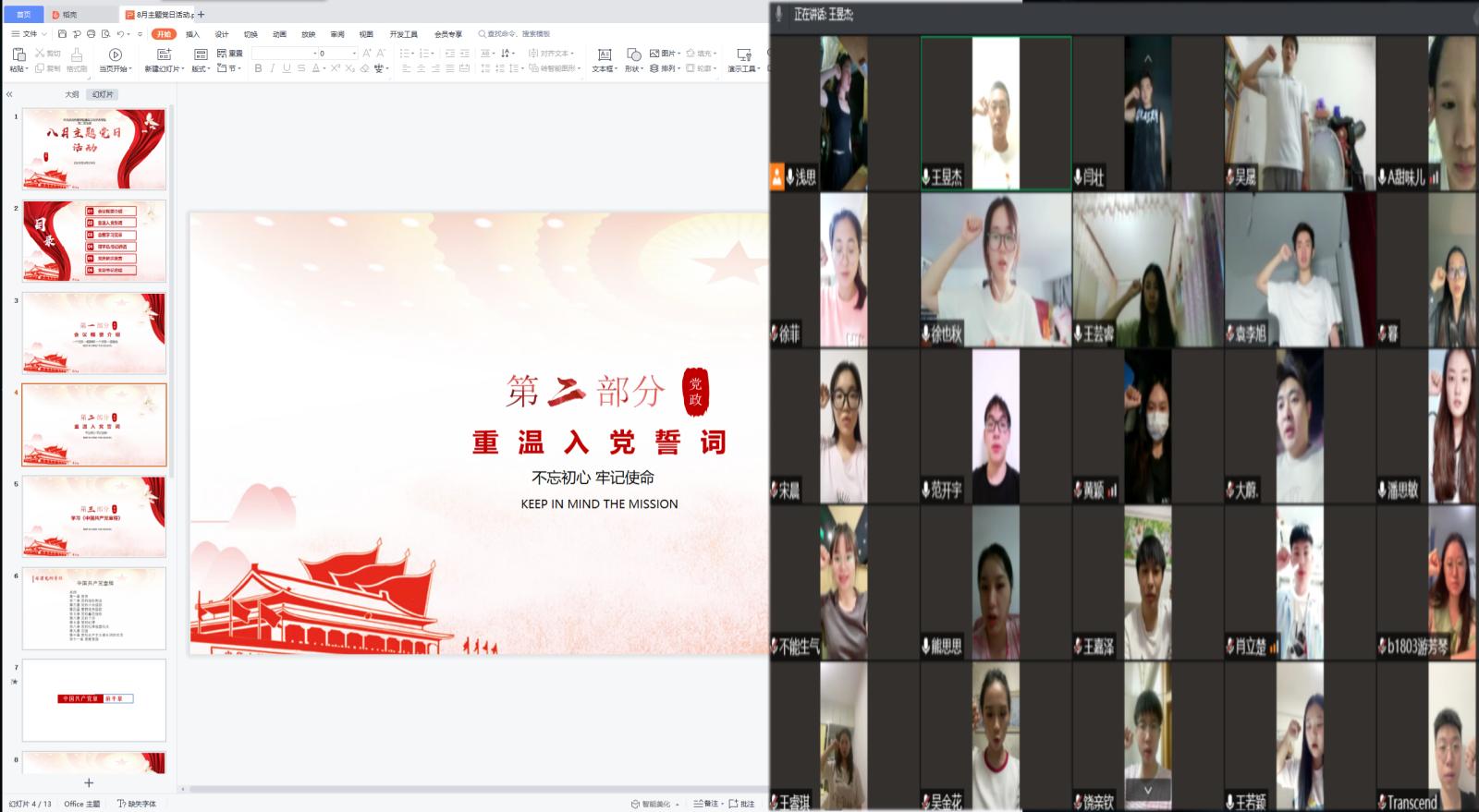 2021年8月29日晚上19:00,yl7703永利集团学生第二党支部在腾讯会议开展了以“深刻领会习近平总书记‘七一’重要讲话精神”为主题的会议,并依次谈论发言。参与此次活动的有yl7703永利集团学生第二党支部书记李思思,以及yl7703永利集团学生第二党支部全体党员,此次活动由学生第二党支部书记李思思同志主持。