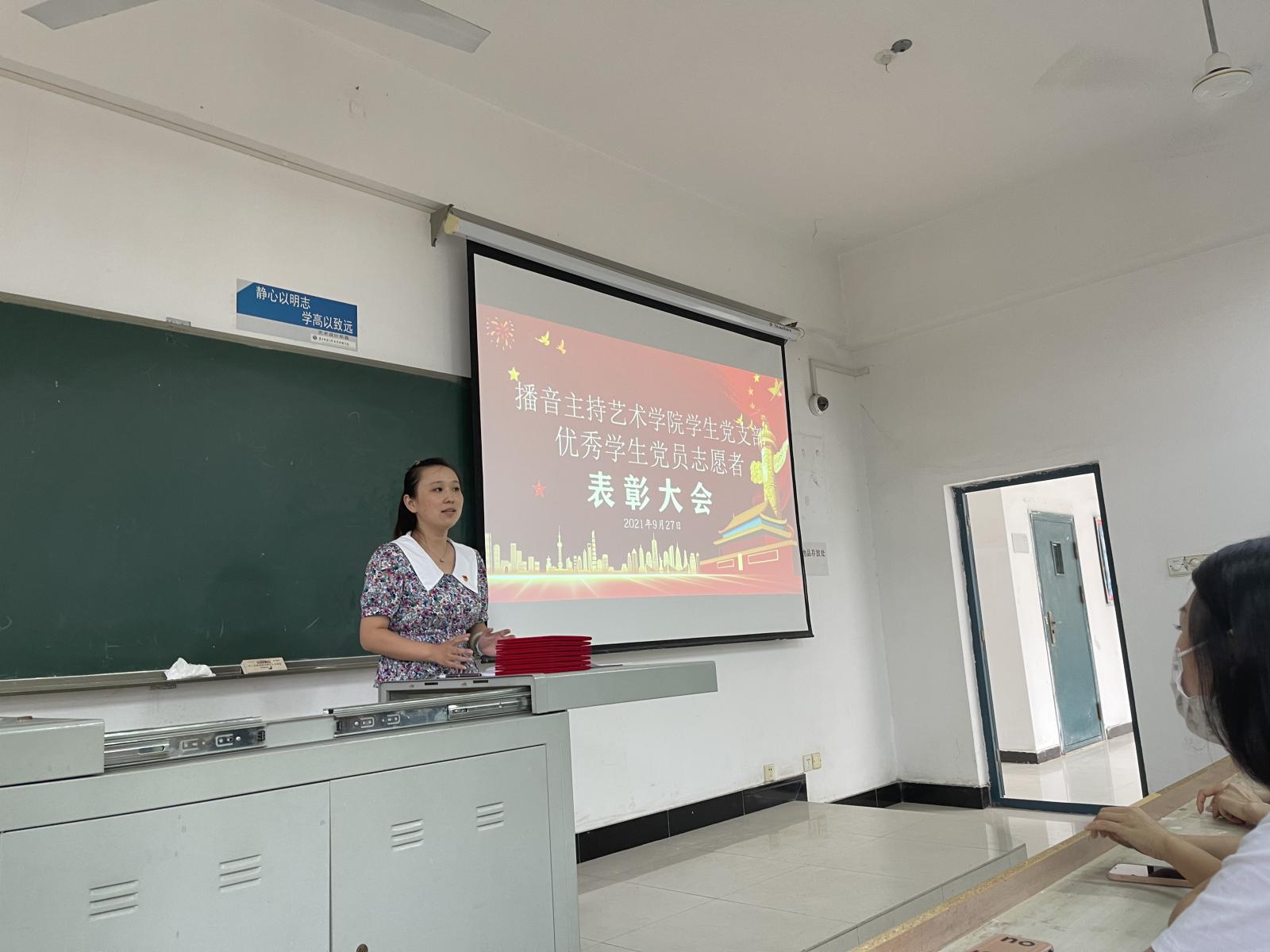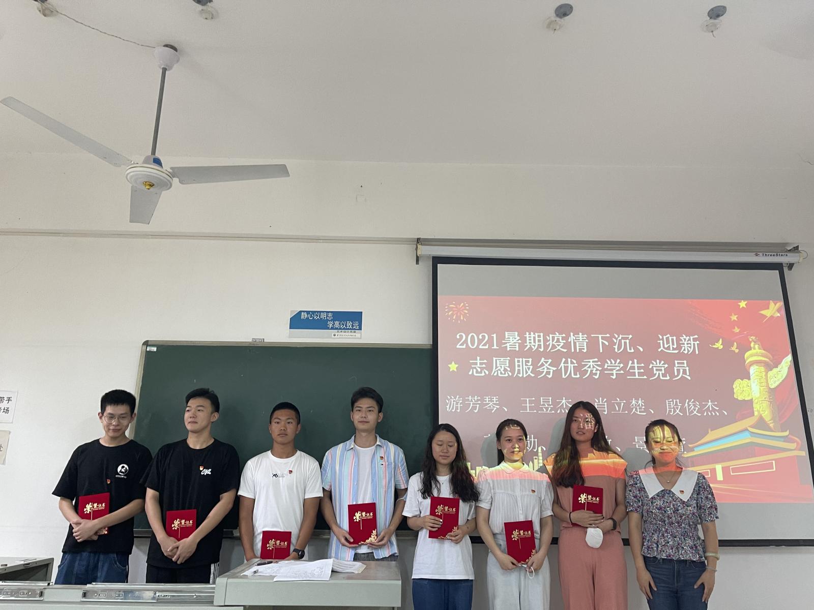 费燕琴同志对优秀党员志愿者进行了表彰并颁发证书。费燕琴同志表示,在迎新生志愿者服务中突出了一大批优秀的志愿者,用实际行动证明了不怕苦、不怕脏和不怕累的奉献精神,表彰优秀学生党员和事迹的目的是为了提醒会上的每一位党员,时刻牢记自身的责任与使命,以最严格的党员标准时刻要求自己,做到从内而外的改变。