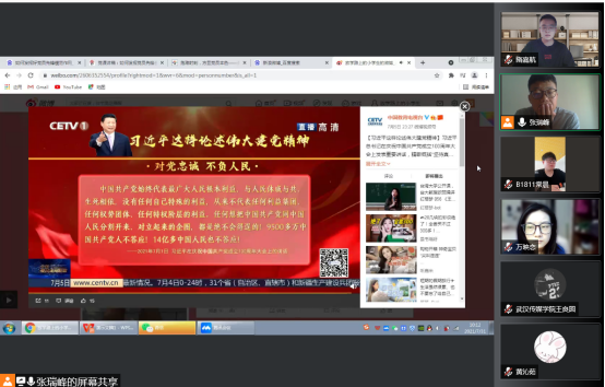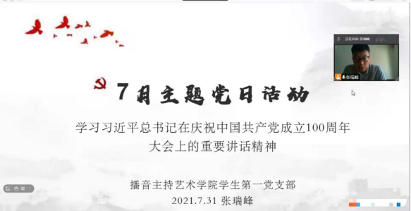 2021年7月31日上午10:00,yl7703永利集团党总支学生第一党支部在腾讯会议开展了主题为“学习习近平总书记在庆祝中国共产党成立100周年大会上的重要讲话精神”的线上主题党日活动。同时对“党员在河南特大洪水中发挥模范带头作用”进行了讨论。参与此次活动的有yl7703永利集团学生第一党支部书记张瑞峰、副书记易巧玲,以及支部全体党员和入党积极分子,此次活动由学生第一党支部书记张瑞峰主持。