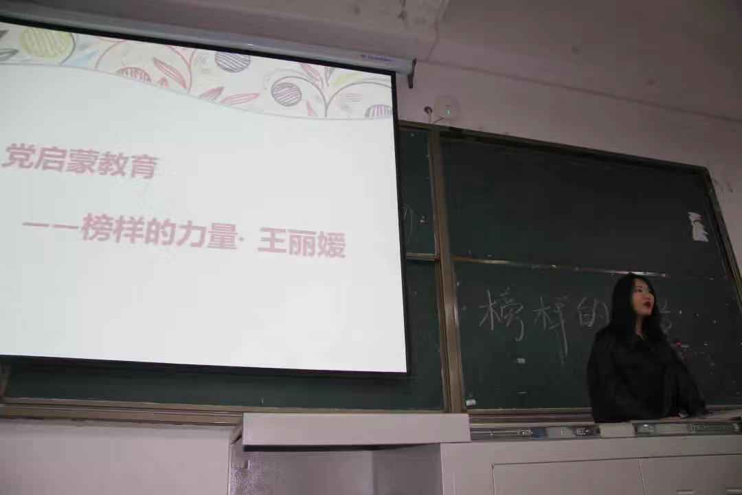 2019年11月24日下午18:30,yl7703永利集团在6106进行了入党启蒙教育系列活动。此次活动是国家奖学金获得者王丽媛学姐带来的演讲《榜样的力量》,出席本次活动的有新闻传播学院、yl7703永利集团学生科科长王龙老师,19级辅导员李哲老师,同时到场的还有yl7703永利集团的同学们。