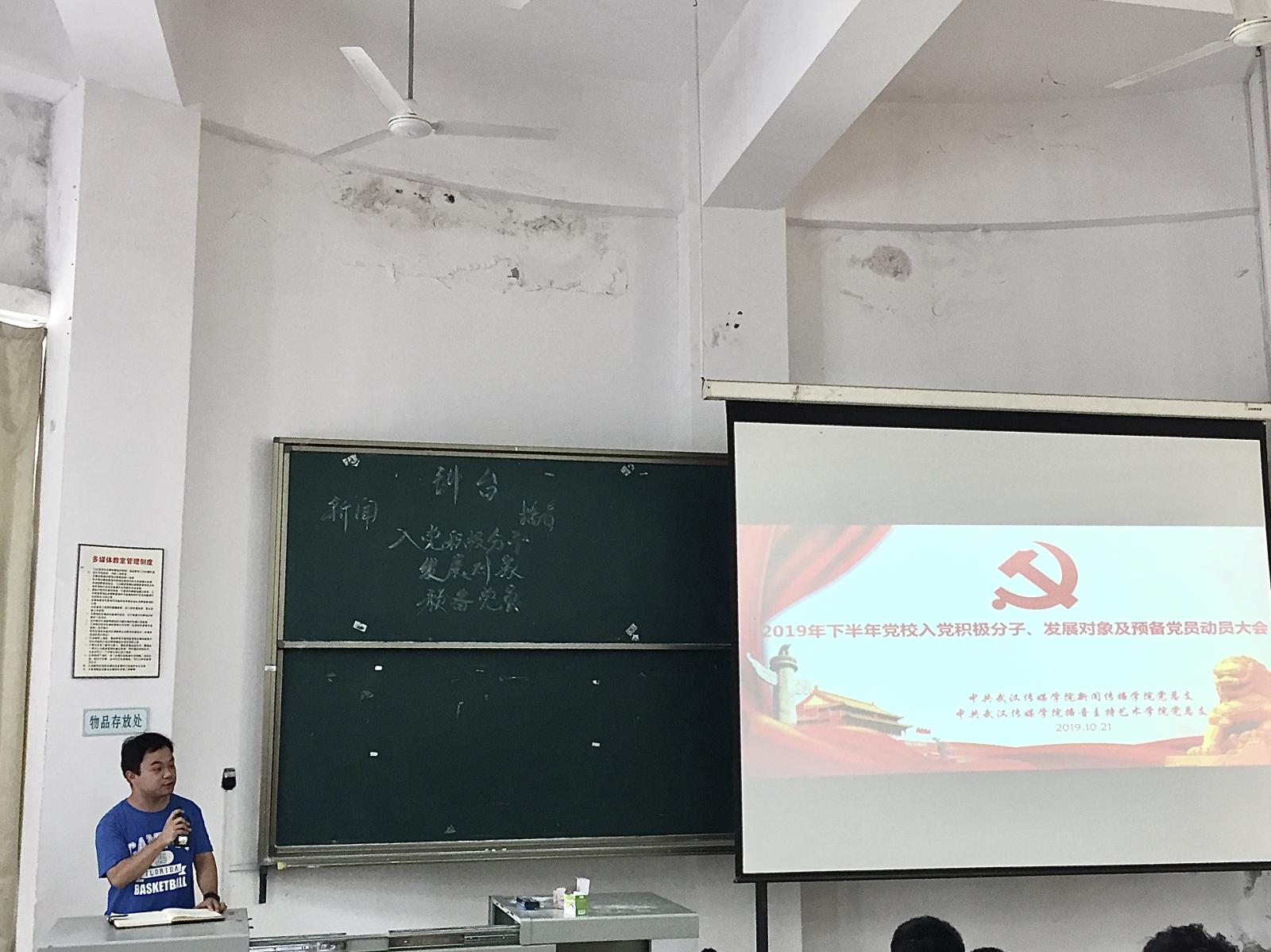 2019年10月21日中午12:00,yl7703永利集团与新闻传播学院两院在三号楼3201教室召开2019年下半年党校入党积极分子、发展对象及预备党员动员大会。出席本次会议的有新闻传播学院、yl7703永利集团党总支书记侯亮荣老师,新闻传播学院、yl7703永利集团团委书记王龙老师,新闻传播学院学生党支部书记肖帅老师,yl7703永利集团学生党支部书记李思思老师。同时,参加此次会议的还有18、19级辅导员们。本次大会由yl7703永利集团2017级唐一硕同学主持。