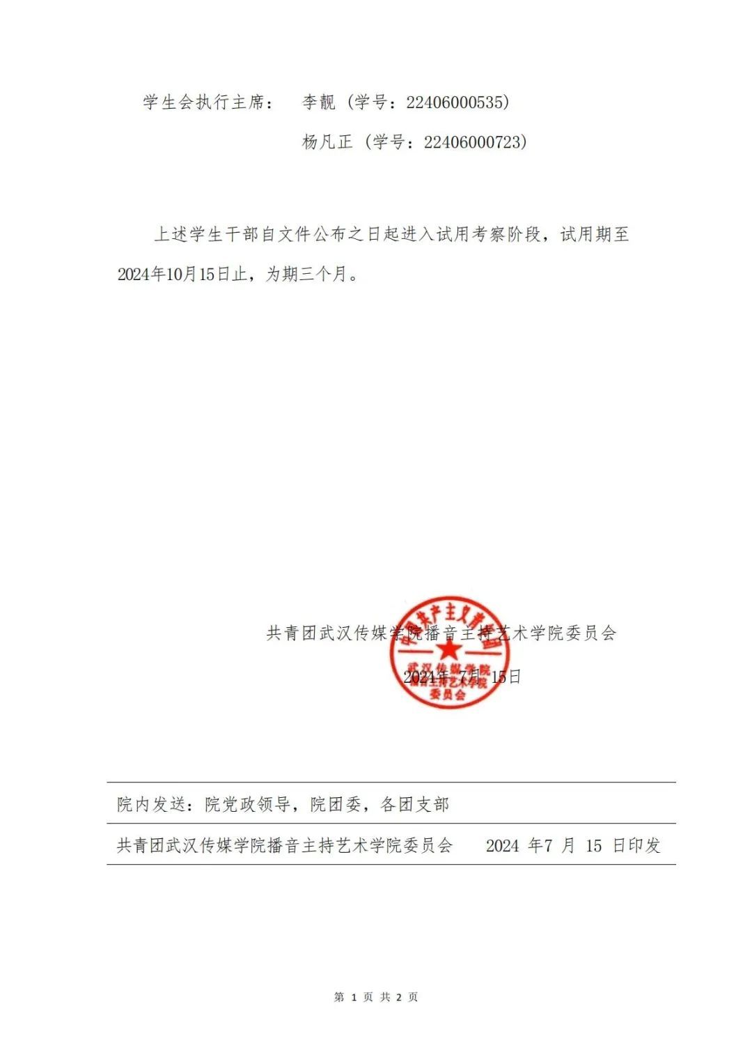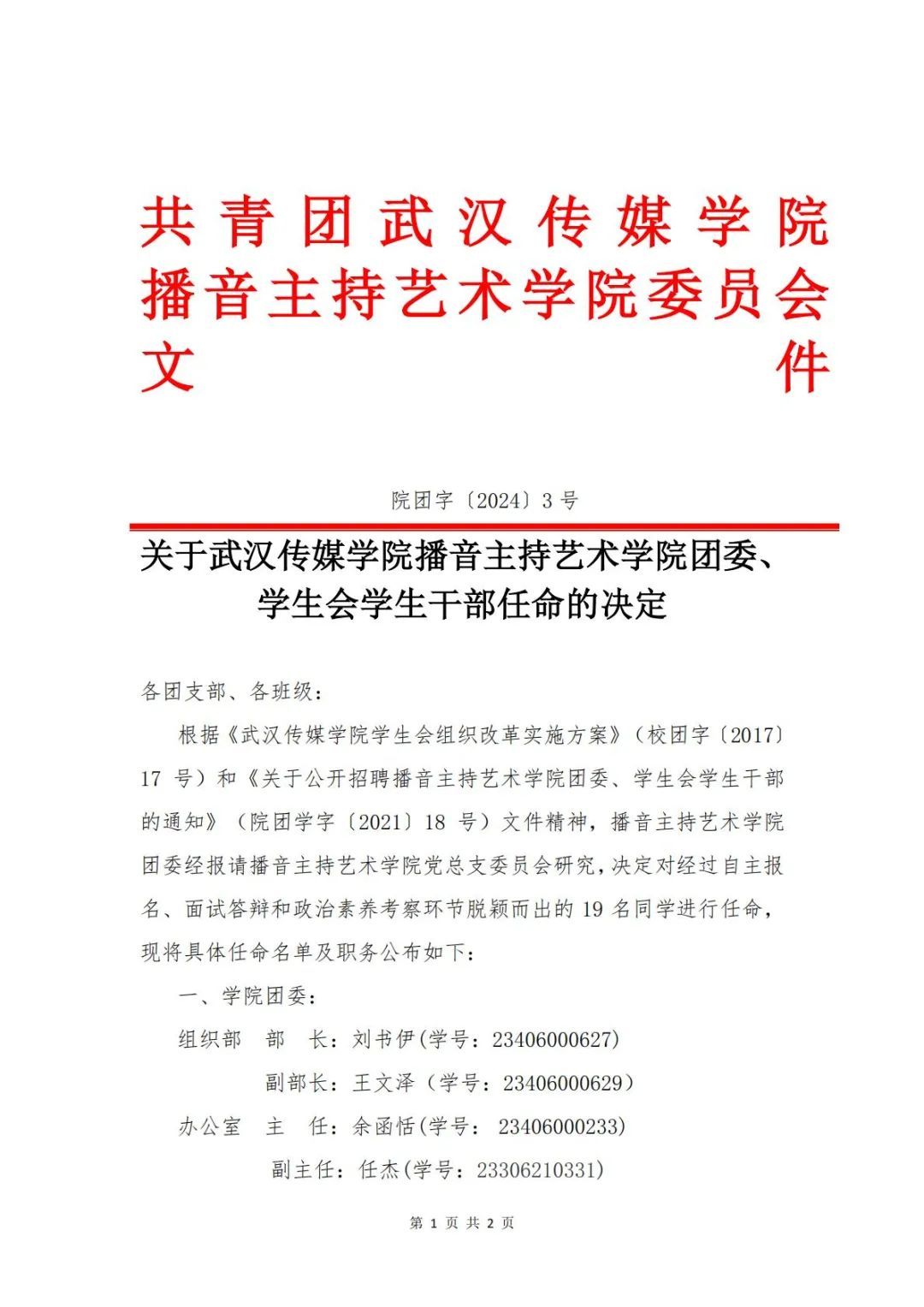 关于yl7703永利集团团委、学生会学生干部任命的决定
