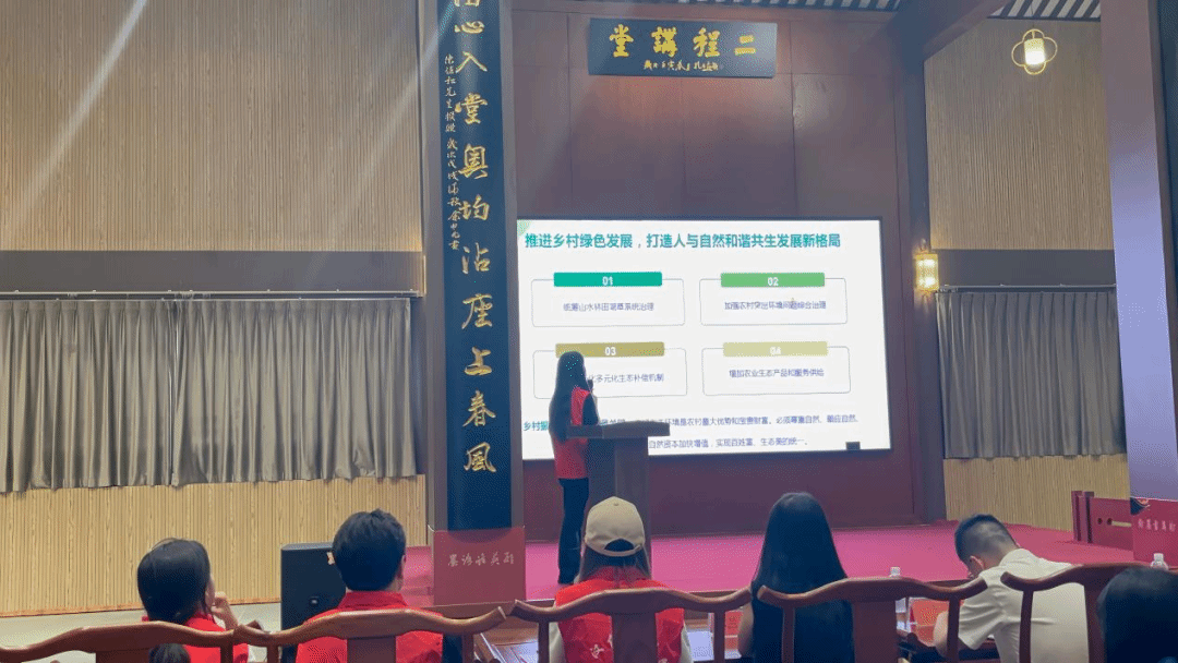 在活动的最后,“赤韵播扬”暑期“三下乡”社会实践团队参加了乡村振兴主题宣讲活动。团队成员余函恬结合党中央关于乡村振兴的决策部署,详细阐述了乡村振兴的目的与意义,同时也提到了黄陂区在推进乡村振兴过程中所作出的具体举措和显著成效。此外,中国农业发展银行负责人还强调了党建引领在乡村振兴中的核心作用,以及如何通过产业融合、人才培育等方式推动乡村振兴。