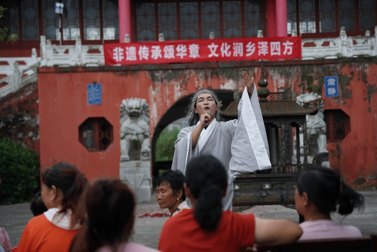 在这十四天里,团队围绕一场非遗文化——荆州花鼓戏,结合《专题朗诵展演》课程,完成了一场公益展演活动。在前期准备的过程中当团队决定以“荆州花鼓戏”结合《专题朗诵展演》进行创新后,部分队员们前往监利市荆州花鼓戏艺术研究所,与其艺术团进行协商,邀请他们共同完成这场公益展演。其他队员们则在yl7703永利集团基础教研室主任胡桐老师的指导下投入到排演当中,他们各司其职为最后的展演做好充分准备,在排练过程中胡桐老师说:“将《专题朗诵展演》课程内容带到乡村,将朗诵与花鼓戏相融合,为传统文化注入新的活力,我们才真正做到了学有所用,才算是真正的用专业知识助力乡村振兴。”