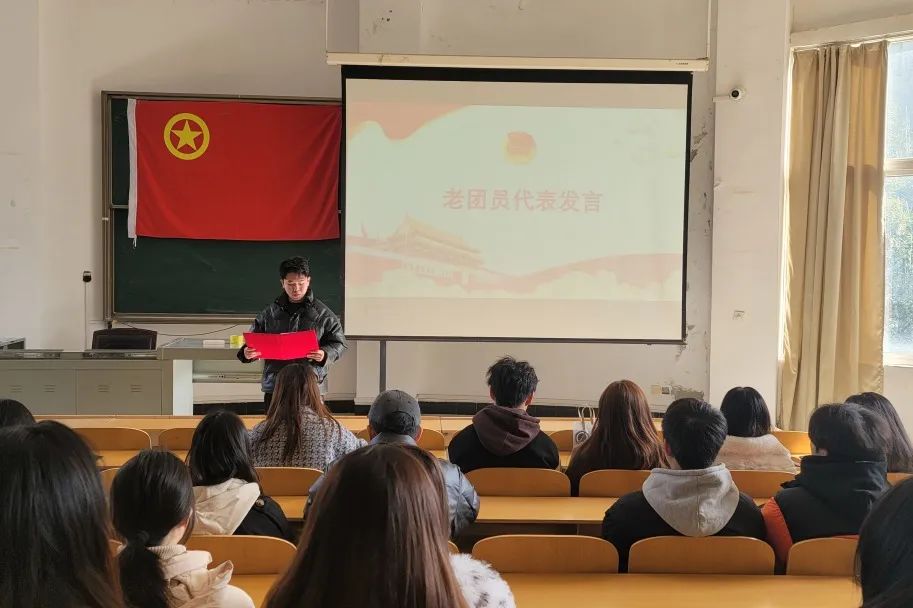 其次新老团员轮流进行发言,老团员代表邱建豪同学讲述了作为共青团员生逢其时,如何发扬榜样作用更好向党组织靠近,新团员代表董哲鸣则讲述了加入中国共青团的原因和对成为一名光荣的共青团员的深刻理解。