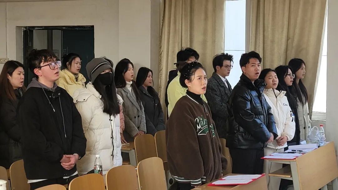 会议最后,全体起立,奏唱团歌,本次入团仪式在庄重的团歌中顺利结束。
