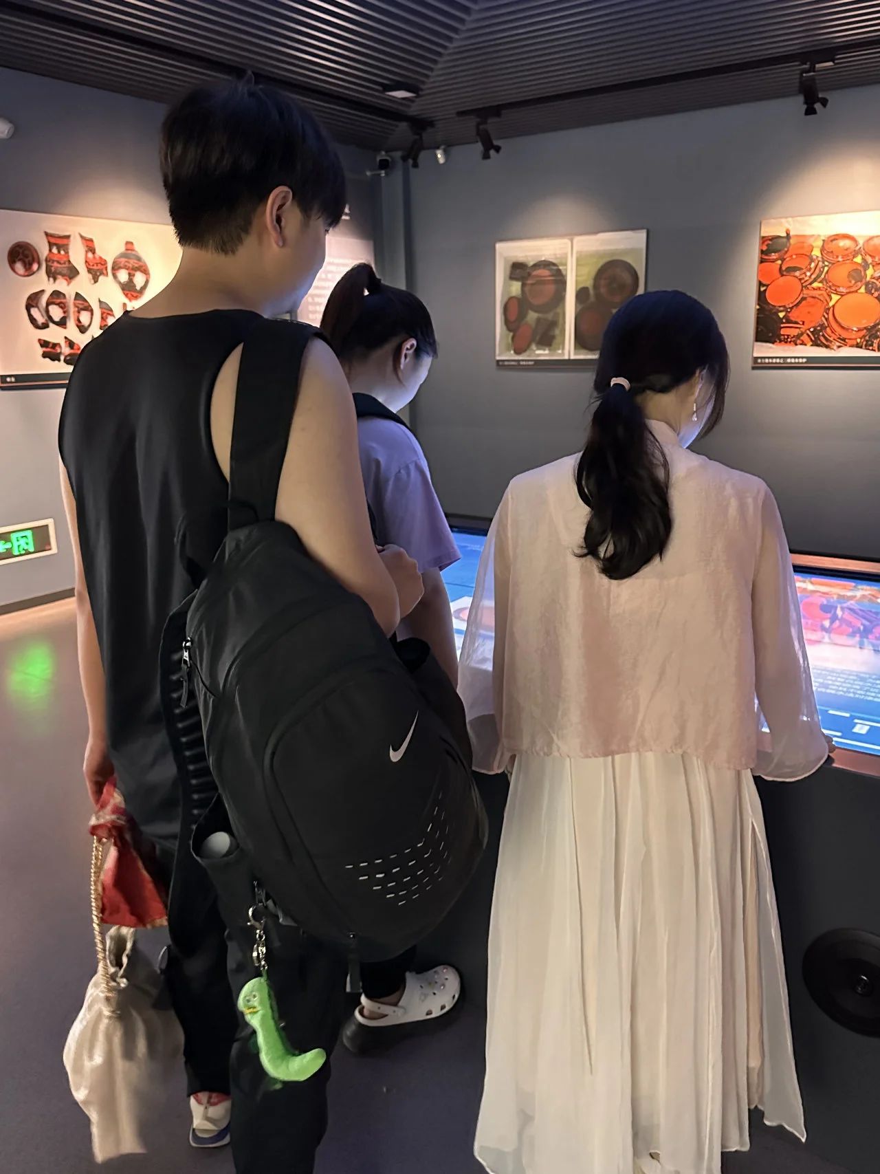 8月4日,实践队前往荆州博物馆等红色遗址进行参观学习,了解荆楚红色历史文化与精神底蕴,了解荆州博物馆里展出的藏品,选取其中最有代表性的3-5个,以第一人称的方式来写出属于它们的“身世故事”,作为本次视频的配音文案。团队初步选取的文物有:牺首栖鸟兽面纹铜尊、凤鸟花卉纹绣浅黄绢面绵袍、玉覆面、陶塑动物。