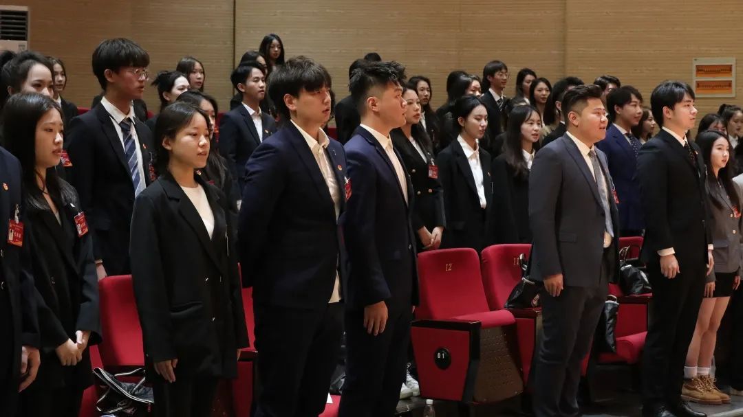 会议伊始,全体高唱中华人民共和国国歌。