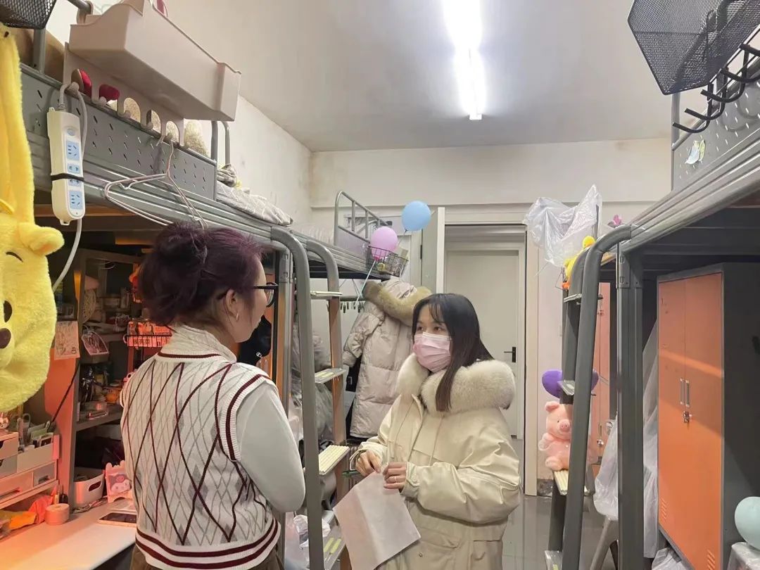 在学生宿舍里,老师们首先认真地核对在寝学生,确认播院学生返校情况。老师们和各位同学们进行亲切交流,了解其假期生活情况以及新学期学习计划,强调寝室人身财产安全的保障问题,同时督促同学们妥善安排好时间,调整学习状态,养成良好的生活作息习惯。