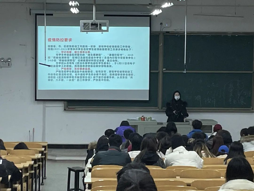 此外,在20日晚上,21级辅导员罗雪薇老师在6106教室召开了新学期第一次会议,本次会议有全体学生参加。会上,罗雪薇老师回顾并总结了2021年大家在学习工作中的不足之处。此外,对于补考和选课等内容进行了详细讲解。