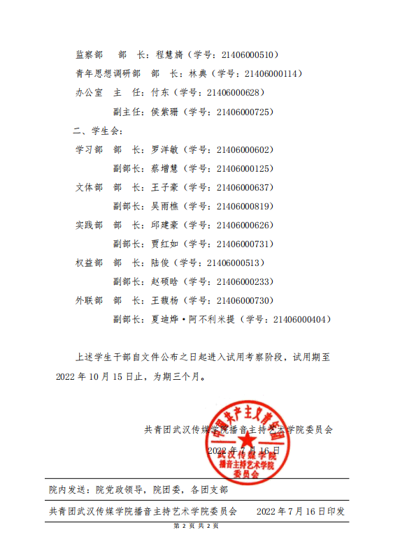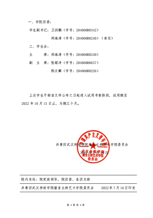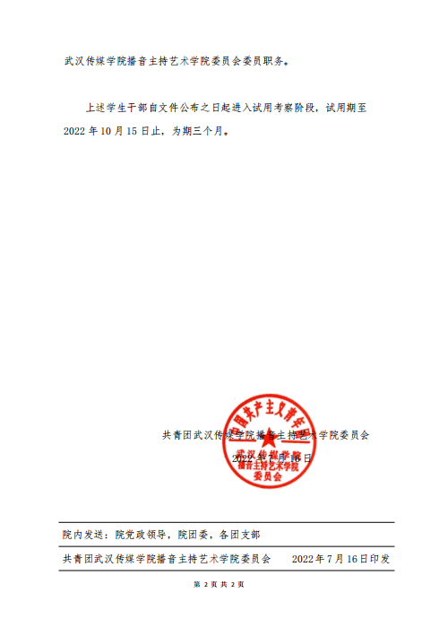 根据《yl7703永利集团学生会组织改革实施方案》(校团字〔2017〕17 号)和《关于公开招聘yl7703永利集团团委、学生会学生干部的通知》(院团学字〔2022〕1 号)文件精神,yl7703永利集团团委经报请yl7703永利集团党总支委员会研究,决定拟对经过自主报名、面试答辩和政治素养考察环节脱颖而出的 18 名同学进行拟任命,现将具体拟任命名单及职务公布如下: