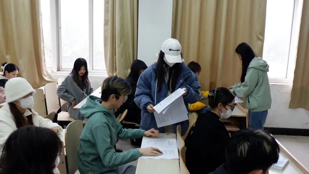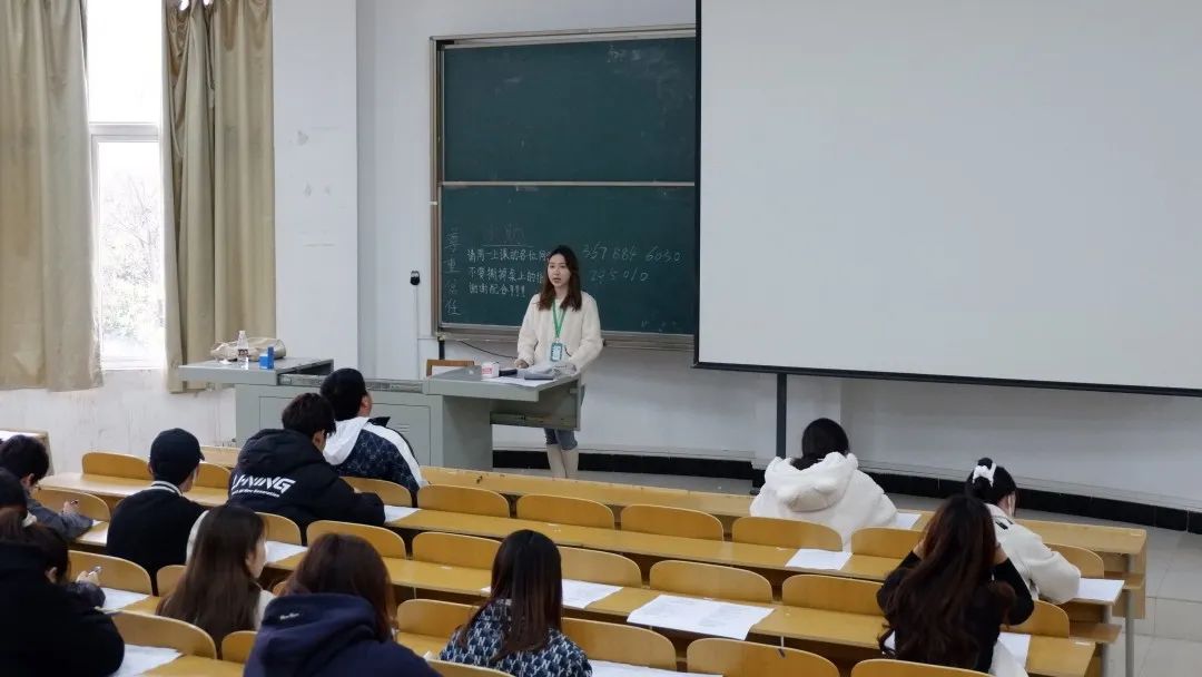 首先是团委监察部部长程慧旖宣读考试纪律,强调考试规则。各位学生会干事分发试题卷和答题卡,按照要求依次填写姓名、学号、班级。然后考生开始认真作答。